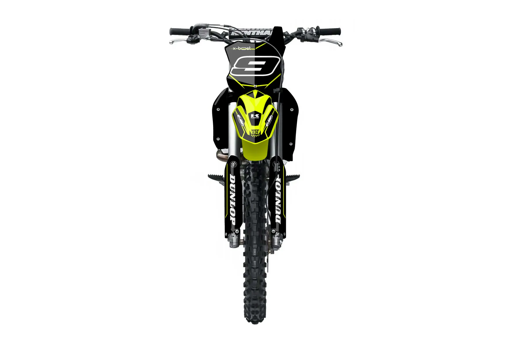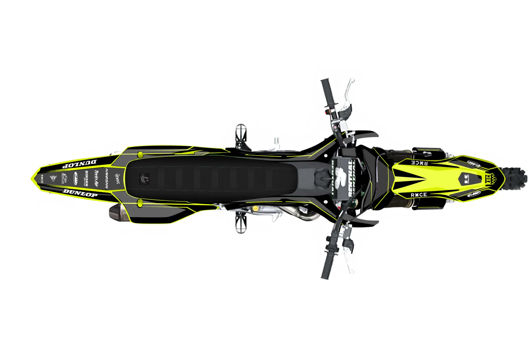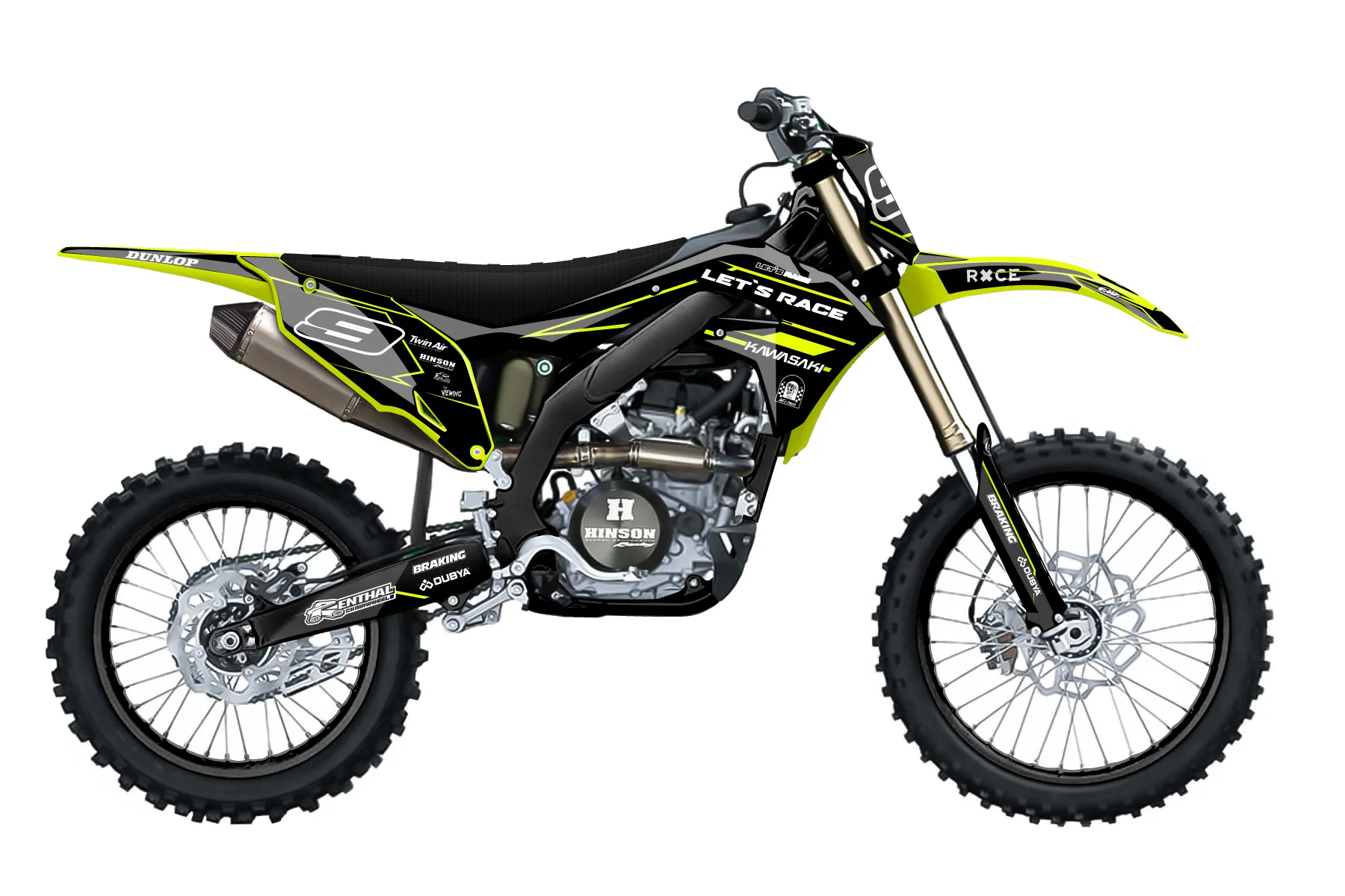 «Fluorescent» — готовый комплект графики серии Maverick для Kawasaki MX Graphic Kit Kawasaki KX 450 SR 2023. В комплекте: графика на бак и боковые облицовки, крылья (переднее и заднее), передний щиток, номерные таблички, защита вилки. Материал: ПВХ-винил 80 мкр с холодной ламинацией 300 мкр, общая толщина 380 мкр; покрытие глянцевое или матовое на выбор. Устойчив к UV-излучению, воде, бензину и мойке высокого давления. Клей акриловый на сольвентной основе — постоянный, для гибких пластиков. На простых поверхностях монтируется без нагрева; для сложных изгибов рекомендуем фен. Этот пресет можно заказать как есть или взять за основу в конструкторе: поменять цвета, добавить стартовый номер и свой бренд. Производство — 3–5 рабочих дней, доставка по России СДЭКом или Почтой, по СНГ — курьерскими службами.