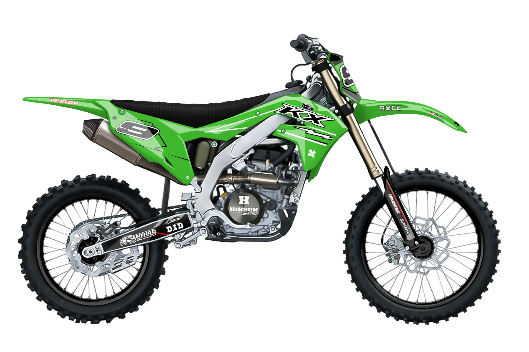 «new different» — готовый комплект графики серии Maverick для Kawasaki MX Graphic Kit Kawasaki KX 450 SR 2023. В комплекте: графика на бак и боковые облицовки, крылья (переднее и заднее), передний щиток, номерные таблички, защита вилки. Материал: ПВХ-винил 80 мкр с холодной ламинацией 300 мкр, общая толщина 380 мкр; покрытие глянцевое или матовое на выбор. Устойчив к UV-излучению, воде, бензину и мойке высокого давления. Клей акриловый на сольвентной основе — постоянный, для гибких пластиков. На простых поверхностях монтируется без нагрева; для сложных изгибов рекомендуем фен. Этот пресет можно заказать как есть или взять за основу в конструкторе: поменять цвета, добавить стартовый номер и свой бренд. Производство — 3–5 рабочих дней, доставка по России СДЭКом или Почтой, по СНГ — курьерскими службами.