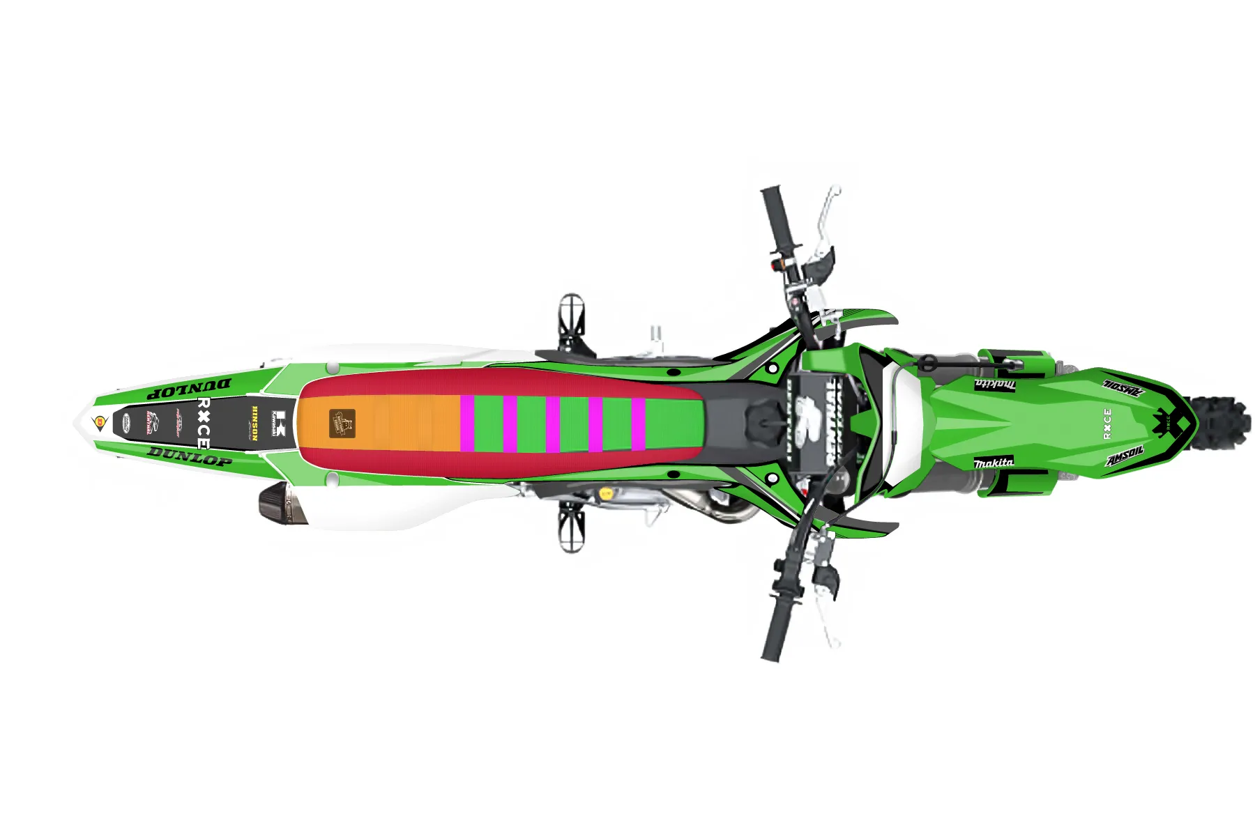 «#3» — готовый комплект графики серии Staple для Kawasaki MX Graphic Kit Kawasaki KX 450 SR 2023. В комплекте: графика на бак и боковые облицовки, крылья (переднее и заднее), передний щиток, номерные таблички, защита вилки. Материал: ПВХ-винил 80 мкр с холодной ламинацией 300 мкр, общая толщина 380 мкр; покрытие глянцевое или матовое на выбор. Устойчив к UV-излучению, воде, бензину и мойке высокого давления. Клей акриловый на сольвентной основе — постоянный, для гибких пластиков. На простых поверхностях монтируется без нагрева; для сложных изгибов рекомендуем фен. Этот пресет можно заказать как есть или взять за основу в конструкторе: поменять цвета, добавить стартовый номер и свой бренд. Производство — 3–5 рабочих дней, доставка по России СДЭКом или Почтой, по СНГ — курьерскими службами.