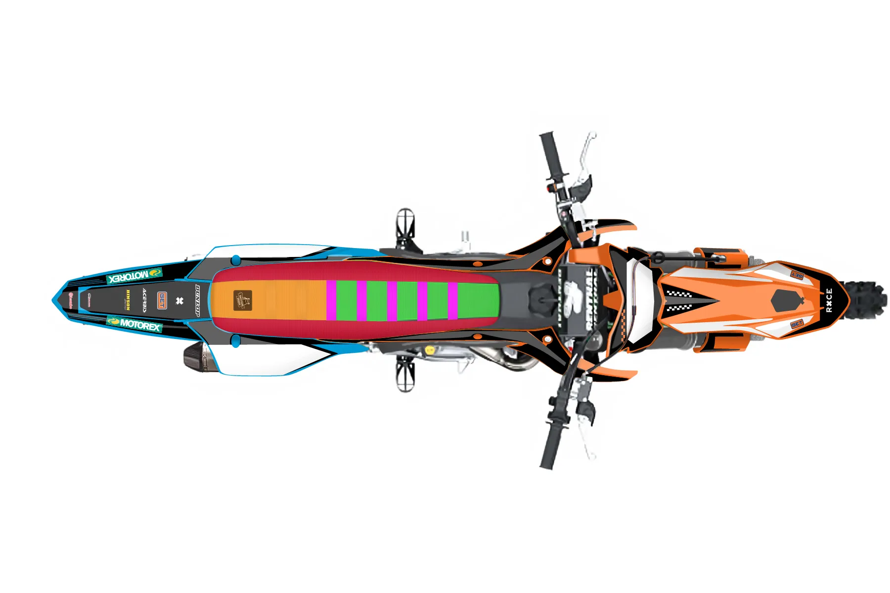 «530CustomDesign» — готовый комплект графики серии Staple для Kawasaki MX Graphic Kit Kawasaki KX 450 SR 2023. В комплекте: графика на бак и боковые облицовки, крылья (переднее и заднее), передний щиток, номерные таблички, защита вилки. Материал: ПВХ-винил 80 мкр с холодной ламинацией 300 мкр, общая толщина 380 мкр; покрытие глянцевое или матовое на выбор. Устойчив к UV-излучению, воде, бензину и мойке высокого давления. Клей акриловый на сольвентной основе — постоянный, для гибких пластиков. На простых поверхностях монтируется без нагрева; для сложных изгибов рекомендуем фен. Этот пресет можно заказать как есть или взять за основу в конструкторе: поменять цвета, добавить стартовый номер и свой бренд. Производство — 3–5 рабочих дней, доставка по России СДЭКом или Почтой, по СНГ — курьерскими службами.