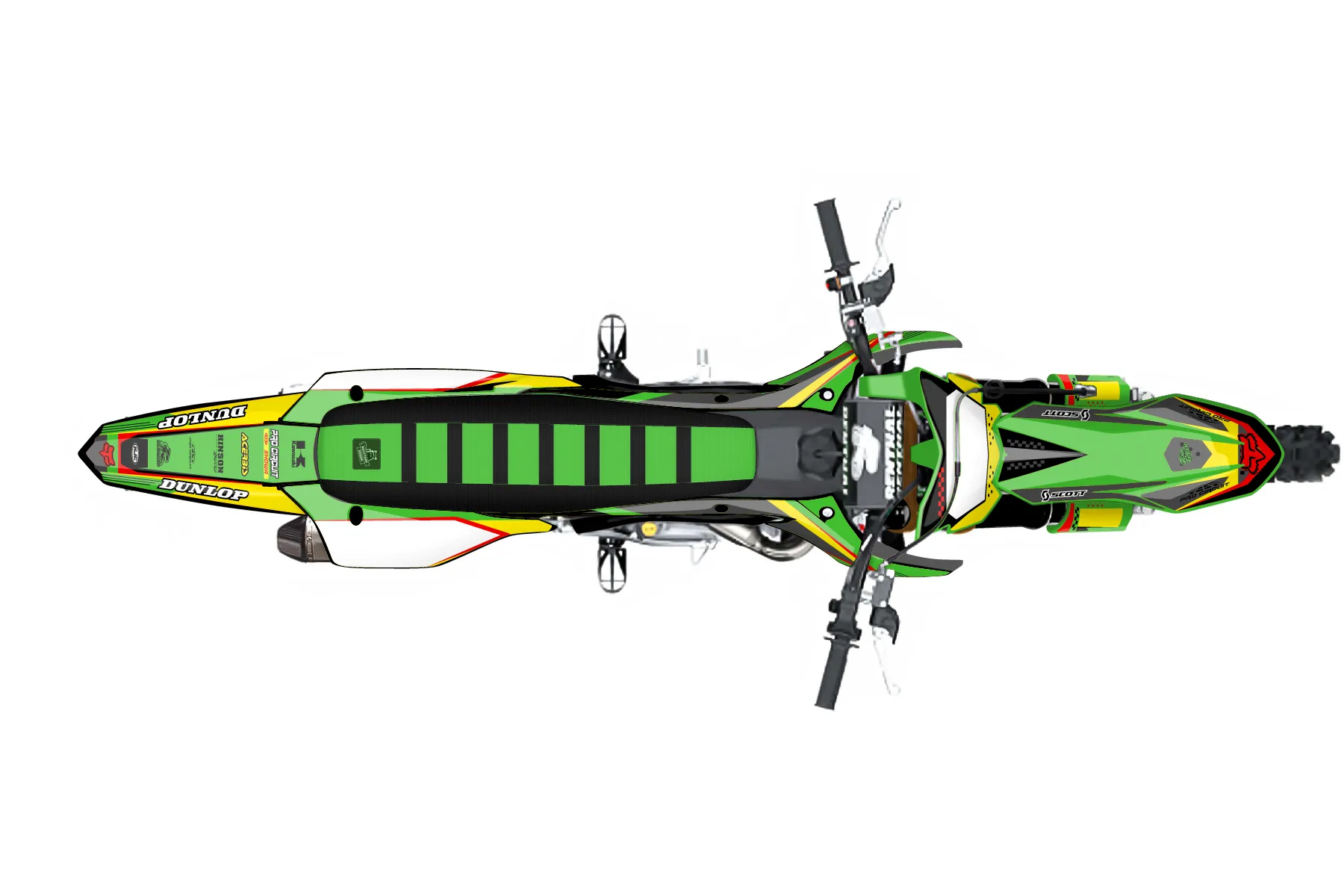 «Scott Huffman Final» — готовый комплект графики серии Staple для Kawasaki MX Graphic Kit Kawasaki KX 450 SR 2023. В комплекте: графика на бак и боковые облицовки, крылья (переднее и заднее), передний щиток, номерные таблички, защита вилки. Материал: ПВХ-винил 80 мкр с холодной ламинацией 300 мкр, общая толщина 380 мкр; покрытие глянцевое или матовое на выбор. Устойчив к UV-излучению, воде, бензину и мойке высокого давления. Клей акриловый на сольвентной основе — постоянный, для гибких пластиков. На простых поверхностях монтируется без нагрева; для сложных изгибов рекомендуем фен. Этот пресет можно заказать как есть или взять за основу в конструкторе: поменять цвета, добавить стартовый номер и свой бренд. Производство — 3–5 рабочих дней, доставка по России СДЭКом или Почтой, по СНГ — курьерскими службами.