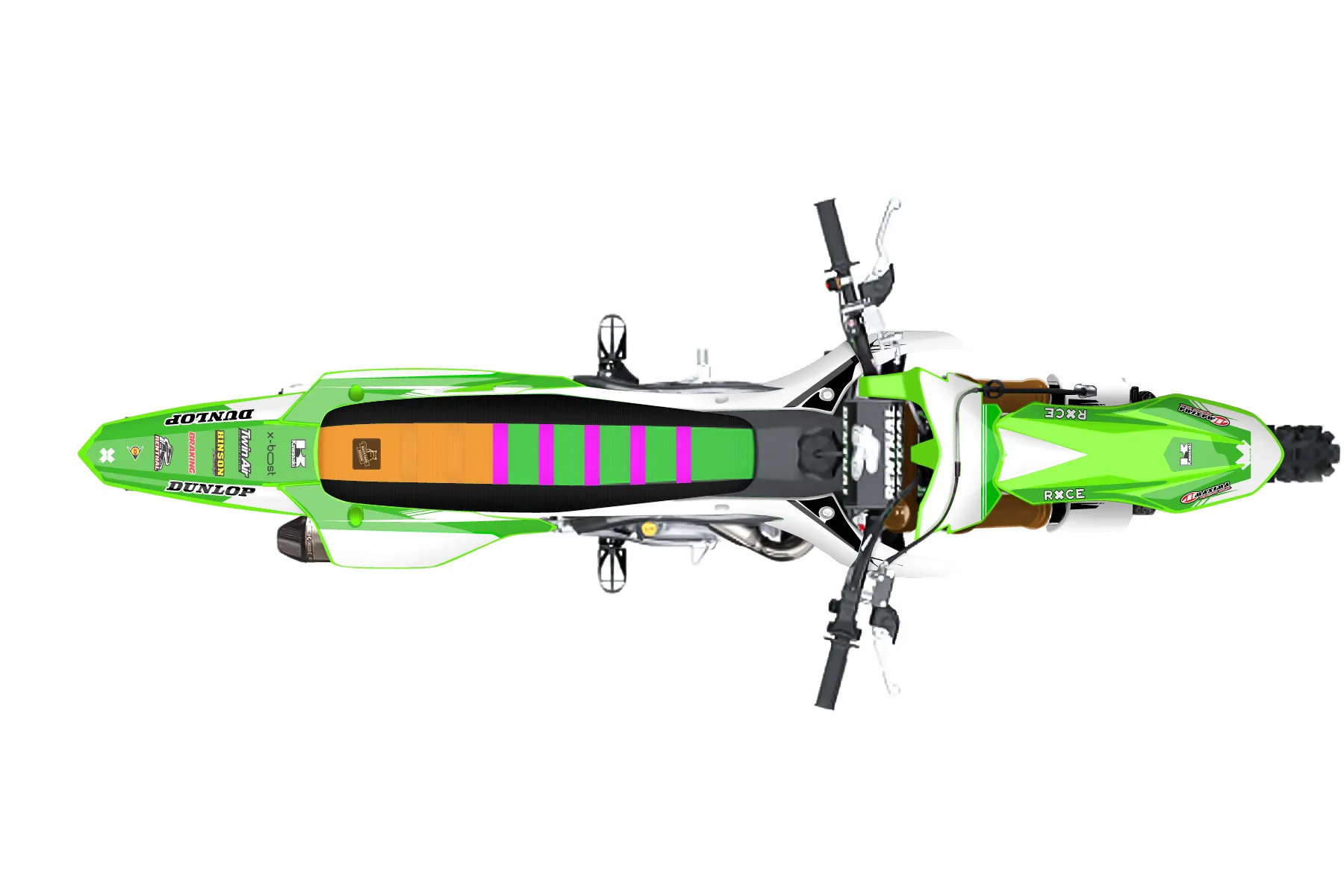 «KX450 #1» — готовый комплект графики серии Untucked для Kawasaki MX Graphic Kit Kawasaki KX 450 SR 2023. В комплекте: графика на бак и боковые облицовки, крылья (переднее и заднее), передний щиток, номерные таблички, защита вилки. Материал: ПВХ-винил 80 мкр с холодной ламинацией 300 мкр, общая толщина 380 мкр; покрытие глянцевое или матовое на выбор. Устойчив к UV-излучению, воде, бензину и мойке высокого давления. Клей акриловый на сольвентной основе — постоянный, для гибких пластиков. На простых поверхностях монтируется без нагрева; для сложных изгибов рекомендуем фен. Этот пресет можно заказать как есть или взять за основу в конструкторе: поменять цвета, добавить стартовый номер и свой бренд. Производство — 3–5 рабочих дней, доставка по России СДЭКом или Почтой, по СНГ — курьерскими службами.