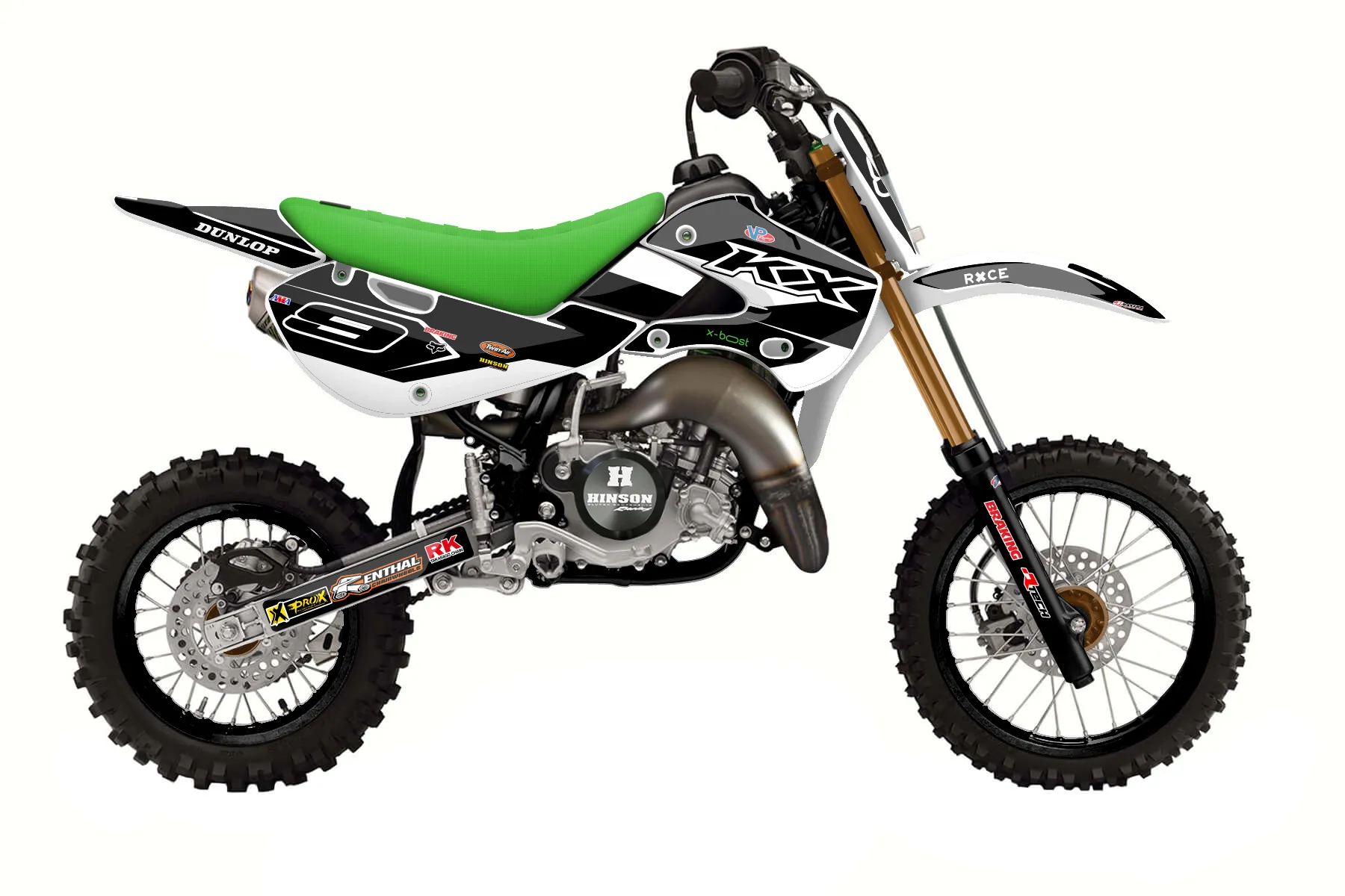 «kigga» — готовый комплект графики серии Staple для Kawasaki MX Graphic Kit Kawasaki KX 65 2000. В комплекте: графика на бак и боковые облицовки, крылья (переднее и заднее), передний щиток, номерные таблички, защита вилки. Материал: ПВХ-винил 80 мкр с холодной ламинацией 300 мкр, общая толщина 380 мкр; покрытие глянцевое или матовое на выбор. Устойчив к UV-излучению, воде, бензину и мойке высокого давления. Клей акриловый на сольвентной основе — постоянный, для гибких пластиков. На простых поверхностях монтируется без нагрева; для сложных изгибов рекомендуем фен. Этот пресет можно заказать как есть или взять за основу в конструкторе: поменять цвета, добавить стартовый номер и свой бренд. Производство — 3–5 рабочих дней, доставка по России СДЭКом или Почтой, по СНГ — курьерскими службами.