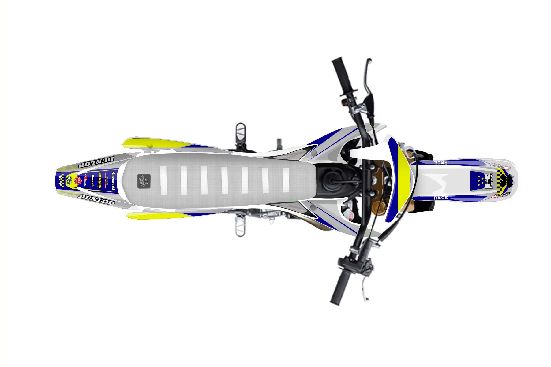 «kx 65 » — готовый комплект графики серии Staple для Kawasaki MX Graphic Kit Kawasaki KX 65 2000. В комплекте: графика на бак и боковые облицовки, крылья (переднее и заднее), передний щиток, номерные таблички, защита вилки. Материал: ПВХ-винил 80 мкр с холодной ламинацией 300 мкр, общая толщина 380 мкр; покрытие глянцевое или матовое на выбор. Устойчив к UV-излучению, воде, бензину и мойке высокого давления. Клей акриловый на сольвентной основе — постоянный, для гибких пластиков. На простых поверхностях монтируется без нагрева; для сложных изгибов рекомендуем фен. Этот пресет можно заказать как есть или взять за основу в конструкторе: поменять цвета, добавить стартовый номер и свой бренд. Производство — 3–5 рабочих дней, доставка по России СДЭКом или Почтой, по СНГ — курьерскими службами.