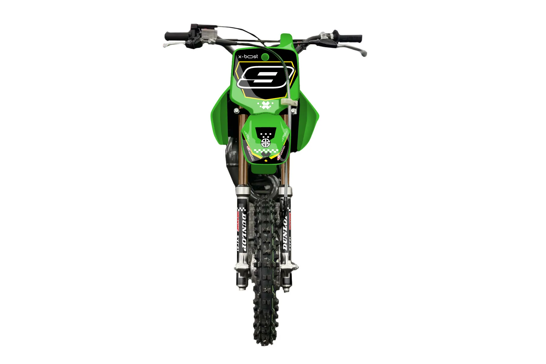 «Meta» — готовый комплект графики серии Staple для Kawasaki MX Graphic Kit Kawasaki KX 65 2000. В комплекте: графика на бак и боковые облицовки, крылья (переднее и заднее), передний щиток, номерные таблички, защита вилки. Материал: ПВХ-винил 80 мкр с холодной ламинацией 300 мкр, общая толщина 380 мкр; покрытие глянцевое или матовое на выбор. Устойчив к UV-излучению, воде, бензину и мойке высокого давления. Клей акриловый на сольвентной основе — постоянный, для гибких пластиков. На простых поверхностях монтируется без нагрева; для сложных изгибов рекомендуем фен. Этот пресет можно заказать как есть или взять за основу в конструкторе: поменять цвета, добавить стартовый номер и свой бренд. Производство — 3–5 рабочих дней, доставка по России СДЭКом или Почтой, по СНГ — курьерскими службами.
