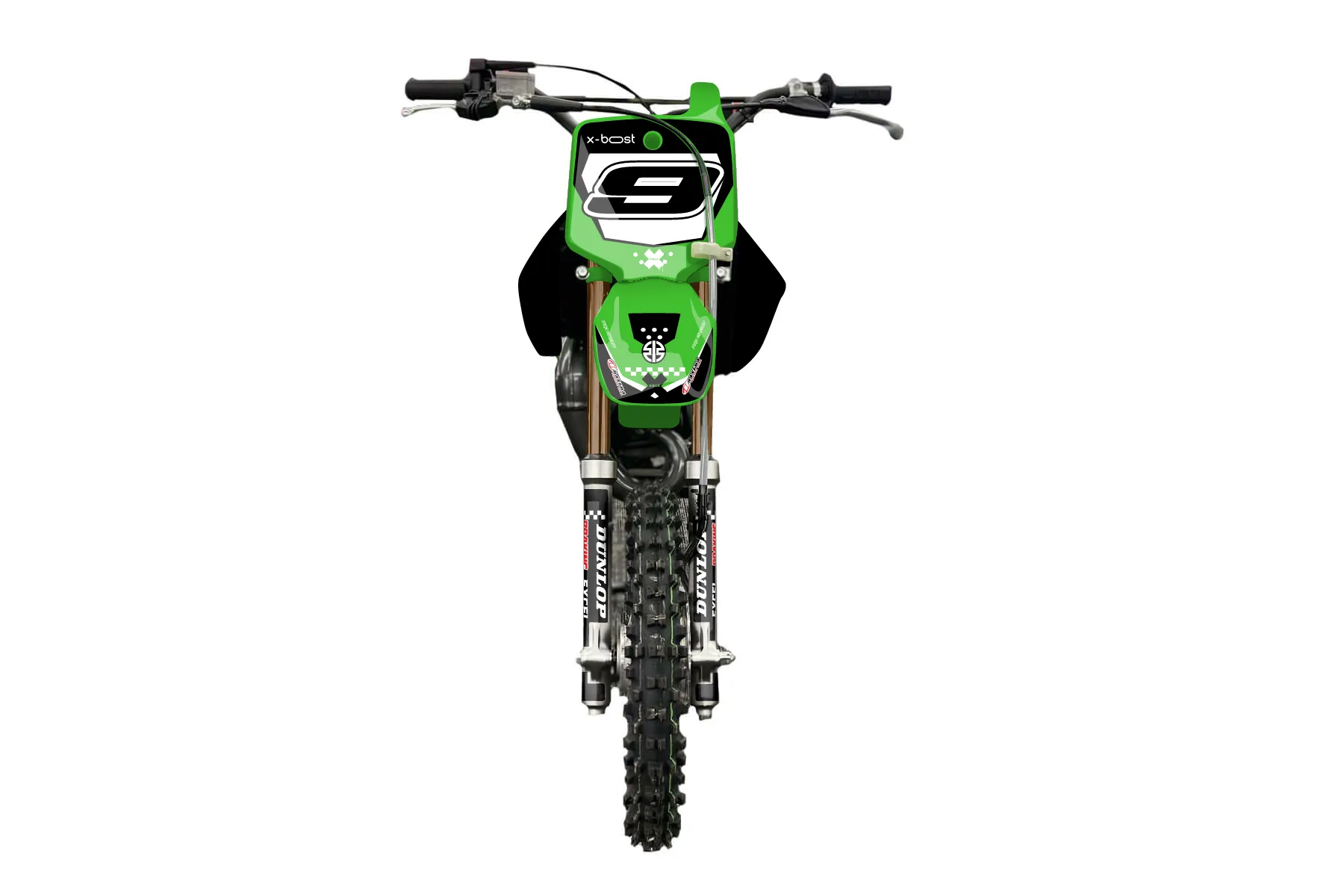 «Slice» — готовый комплект графики серии Staple для Kawasaki MX Graphic Kit Kawasaki KX 65 2000. В комплекте: графика на бак и боковые облицовки, крылья (переднее и заднее), передний щиток, номерные таблички, защита вилки. Материал: ПВХ-винил 80 мкр с холодной ламинацией 300 мкр, общая толщина 380 мкр; покрытие глянцевое или матовое на выбор. Устойчив к UV-излучению, воде, бензину и мойке высокого давления. Клей акриловый на сольвентной основе — постоянный, для гибких пластиков. На простых поверхностях монтируется без нагрева; для сложных изгибов рекомендуем фен. Этот пресет можно заказать как есть или взять за основу в конструкторе: поменять цвета, добавить стартовый номер и свой бренд. Производство — 3–5 рабочих дней, доставка по России СДЭКом или Почтой, по СНГ — курьерскими службами.