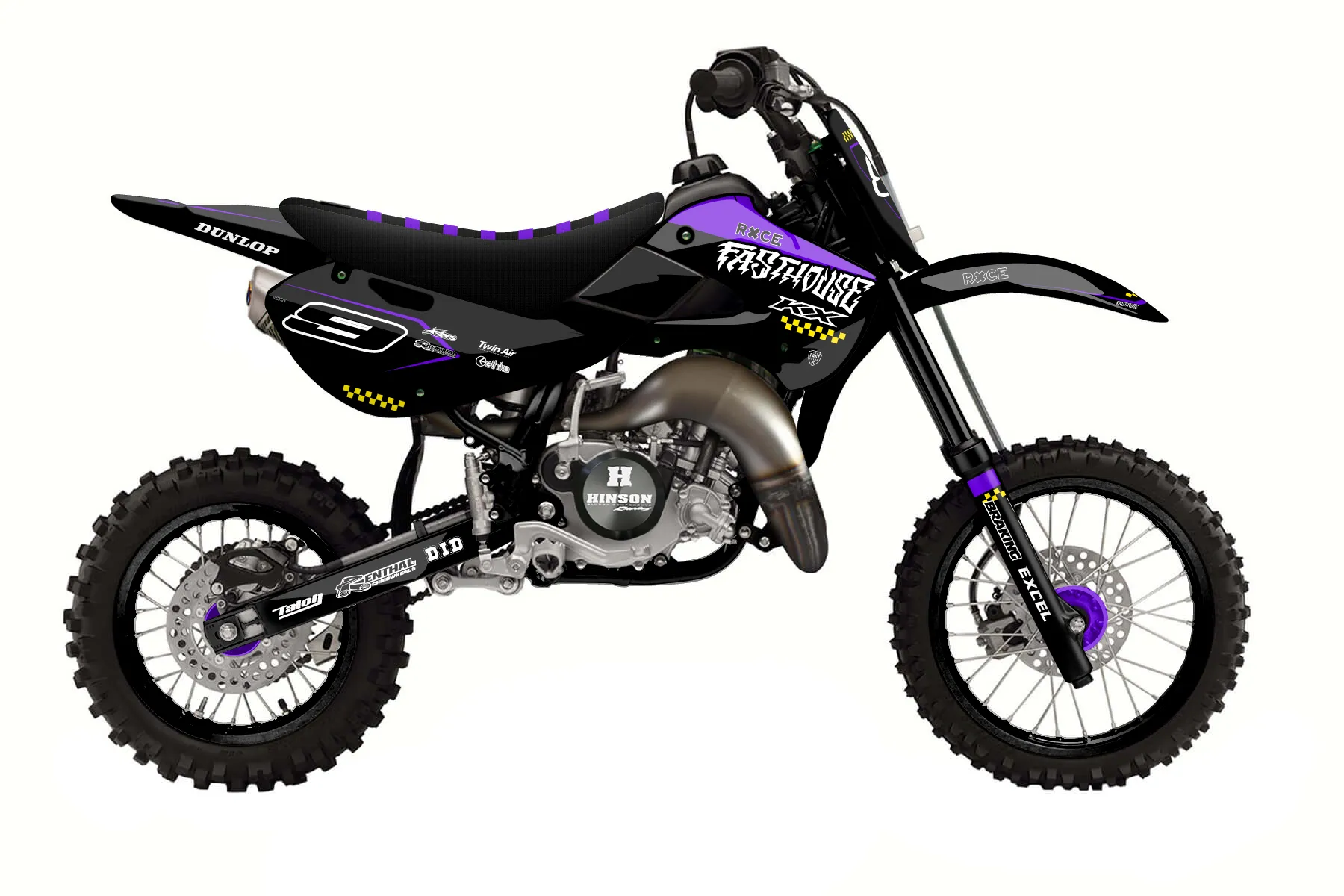 «Tyler’s 110 graphics» — готовый комплект графики серии Staple для Kawasaki MX Graphic Kit Kawasaki KX 65 2000. В комплекте: графика на бак и боковые облицовки, крылья (переднее и заднее), передний щиток, номерные таблички, защита вилки. Материал: ПВХ-винил 80 мкр с холодной ламинацией 300 мкр, общая толщина 380 мкр; покрытие глянцевое или матовое на выбор. Устойчив к UV-излучению, воде, бензину и мойке высокого давления. Клей акриловый на сольвентной основе — постоянный, для гибких пластиков. На простых поверхностях монтируется без нагрева; для сложных изгибов рекомендуем фен. Этот пресет можно заказать как есть или взять за основу в конструкторе: поменять цвета, добавить стартовый номер и свой бренд. Производство — 3–5 рабочих дней, доставка по России СДЭКом или Почтой, по СНГ — курьерскими службами.