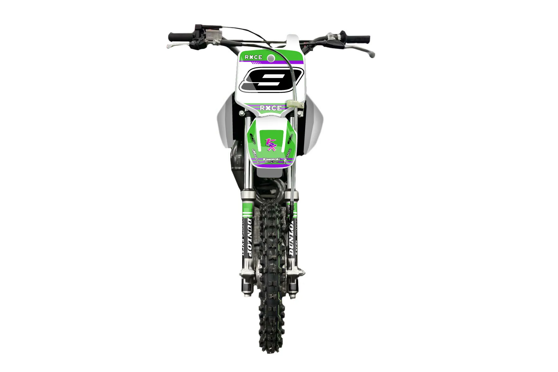 «kx throw back » — готовый комплект графики серии Untucked для Kawasaki MX Graphic Kit Kawasaki KX 65 2000. В комплекте: графика на бак и боковые облицовки, крылья (переднее и заднее), передний щиток, номерные таблички, защита вилки. Материал: ПВХ-винил 80 мкр с холодной ламинацией 300 мкр, общая толщина 380 мкр; покрытие глянцевое или матовое на выбор. Устойчив к UV-излучению, воде, бензину и мойке высокого давления. Клей акриловый на сольвентной основе — постоянный, для гибких пластиков. На простых поверхностях монтируется без нагрева; для сложных изгибов рекомендуем фен. Этот пресет можно заказать как есть или взять за основу в конструкторе: поменять цвета, добавить стартовый номер и свой бренд. Производство — 3–5 рабочих дней, доставка по России СДЭКом или Почтой, по СНГ — курьерскими службами.