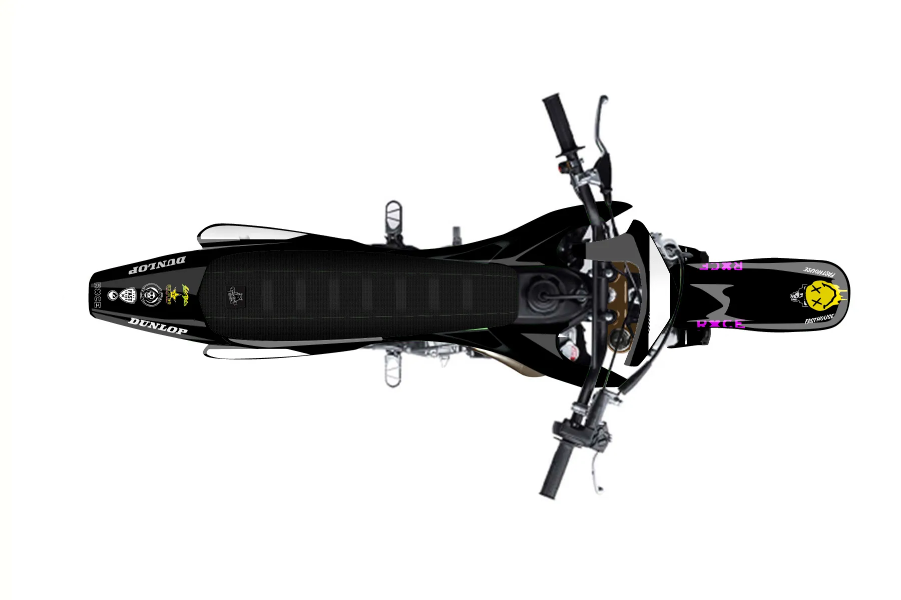 «mcgoo329!» — готовый комплект графики серии Untucked для Kawasaki MX Graphic Kit Kawasaki KX 65 2000. В комплекте: графика на бак и боковые облицовки, крылья (переднее и заднее), передний щиток, номерные таблички, защита вилки. Материал: ПВХ-винил 80 мкр с холодной ламинацией 300 мкр, общая толщина 380 мкр; покрытие глянцевое или матовое на выбор. Устойчив к UV-излучению, воде, бензину и мойке высокого давления. Клей акриловый на сольвентной основе — постоянный, для гибких пластиков. На простых поверхностях монтируется без нагрева; для сложных изгибов рекомендуем фен. Этот пресет можно заказать как есть или взять за основу в конструкторе: поменять цвета, добавить стартовый номер и свой бренд. Производство — 3–5 рабочих дней, доставка по России СДЭКом или Почтой, по СНГ — курьерскими службами.