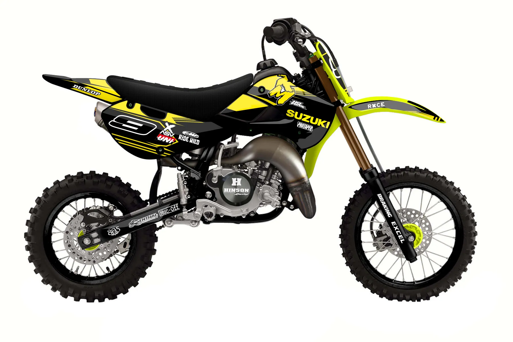 «suzuki pitbike » — готовый комплект графики серии Untucked для Kawasaki MX Graphic Kit Kawasaki KX 65 2000. В комплекте: графика на бак и боковые облицовки, крылья (переднее и заднее), передний щиток, номерные таблички, защита вилки. Материал: ПВХ-винил 80 мкр с холодной ламинацией 300 мкр, общая толщина 380 мкр; покрытие глянцевое или матовое на выбор. Устойчив к UV-излучению, воде, бензину и мойке высокого давления. Клей акриловый на сольвентной основе — постоянный, для гибких пластиков. На простых поверхностях монтируется без нагрева; для сложных изгибов рекомендуем фен. Этот пресет можно заказать как есть или взять за основу в конструкторе: поменять цвета, добавить стартовый номер и свой бренд. Производство — 3–5 рабочих дней, доставка по России СДЭКом или Почтой, по СНГ — курьерскими службами.