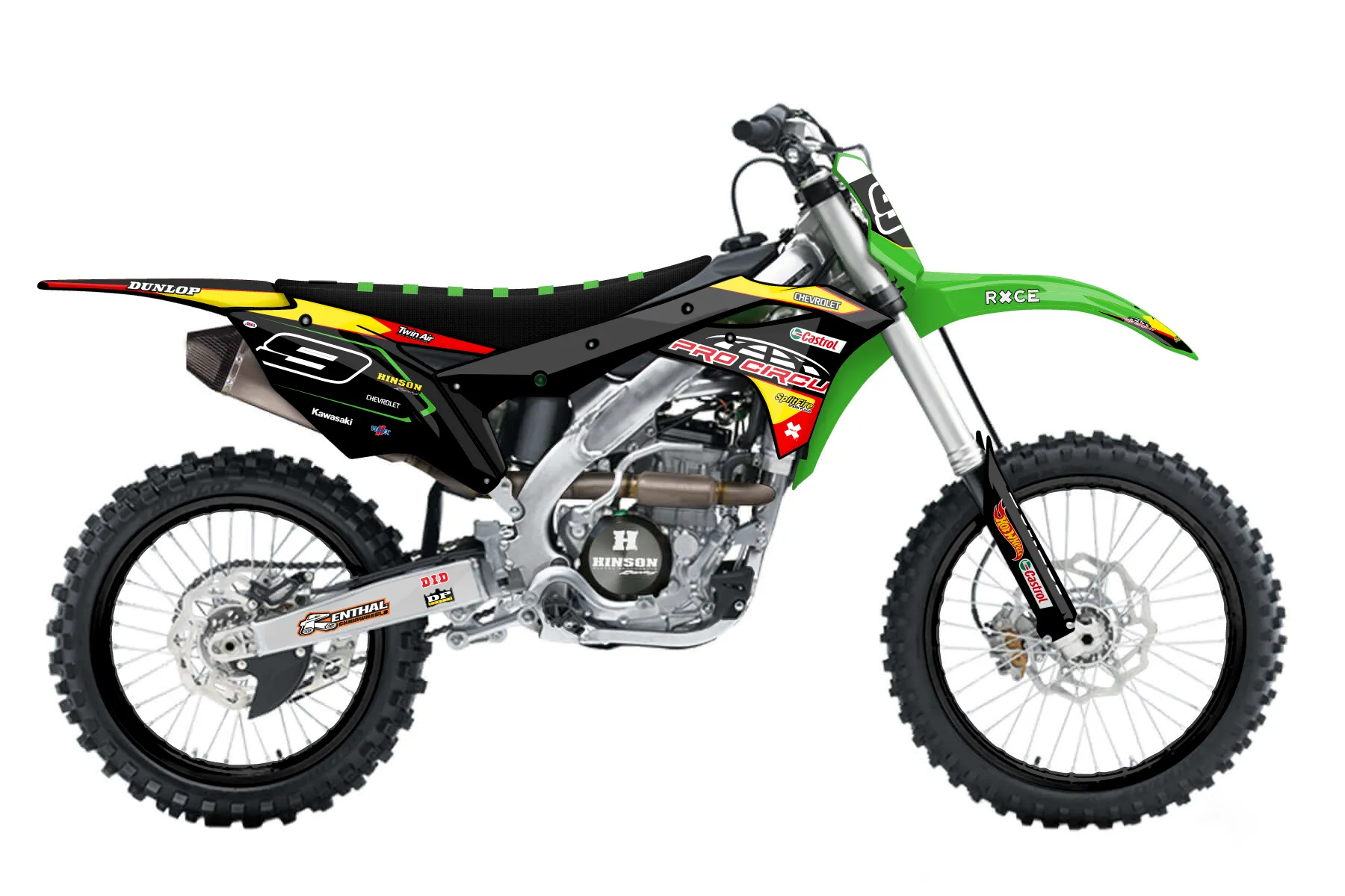 «Industry» — готовый комплект графики серии Flow для Kawasaki MX Graphic Kit Kawasaki KX250F 2017. В комплекте: графика на бак и боковые облицовки, крылья (переднее и заднее), передний щиток, номерные таблички, защита вилки. Материал: ПВХ-винил 80 мкр с холодной ламинацией 300 мкр, общая толщина 380 мкр; покрытие глянцевое или матовое на выбор. Устойчив к UV-излучению, воде, бензину и мойке высокого давления. Клей акриловый на сольвентной основе — постоянный, для гибких пластиков. На простых поверхностях монтируется без нагрева; для сложных изгибов рекомендуем фен. Этот пресет можно заказать как есть или взять за основу в конструкторе: поменять цвета, добавить стартовый номер и свой бренд. Производство — 3–5 рабочих дней, доставка по России СДЭКом или Почтой, по СНГ — курьерскими службами.
