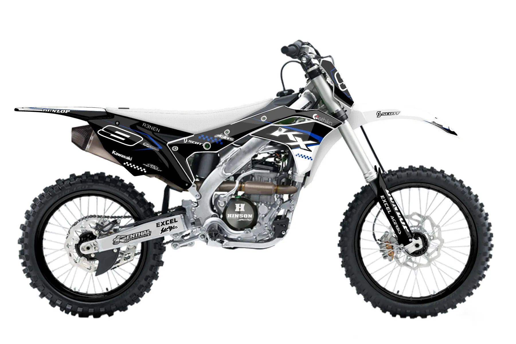 «blue one» — готовый комплект графики серии Staple для Kawasaki MX Graphic Kit Kawasaki KX250F 2017. В комплекте: графика на бак и боковые облицовки, крылья (переднее и заднее), передний щиток, номерные таблички, защита вилки. Материал: ПВХ-винил 80 мкр с холодной ламинацией 300 мкр, общая толщина 380 мкр; покрытие глянцевое или матовое на выбор. Устойчив к UV-излучению, воде, бензину и мойке высокого давления. Клей акриловый на сольвентной основе — постоянный, для гибких пластиков. На простых поверхностях монтируется без нагрева; для сложных изгибов рекомендуем фен. Этот пресет можно заказать как есть или взять за основу в конструкторе: поменять цвета, добавить стартовый номер и свой бренд. Производство — 3–5 рабочих дней, доставка по России СДЭКом или Почтой, по СНГ — курьерскими службами.