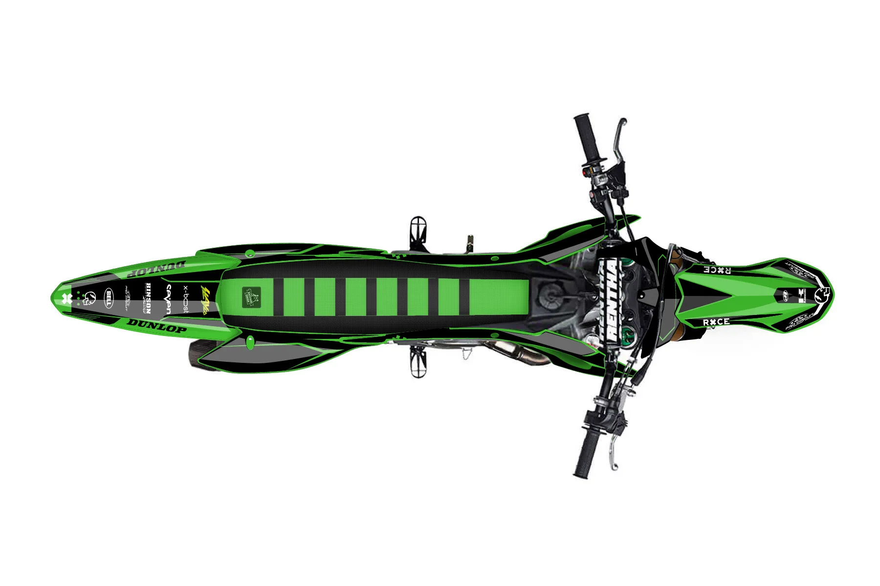 «Slayco v2» — готовый комплект графики серии Staple для Kawasaki MX Graphic Kit Kawasaki KX250F 2017. В комплекте: графика на бак и боковые облицовки, крылья (переднее и заднее), передний щиток, номерные таблички, защита вилки. Материал: ПВХ-винил 80 мкр с холодной ламинацией 300 мкр, общая толщина 380 мкр; покрытие глянцевое или матовое на выбор. Устойчив к UV-излучению, воде, бензину и мойке высокого давления. Клей акриловый на сольвентной основе — постоянный, для гибких пластиков. На простых поверхностях монтируется без нагрева; для сложных изгибов рекомендуем фен. Этот пресет можно заказать как есть или взять за основу в конструкторе: поменять цвета, добавить стартовый номер и свой бренд. Производство — 3–5 рабочих дней, доставка по России СДЭКом или Почтой, по СНГ — курьерскими службами.