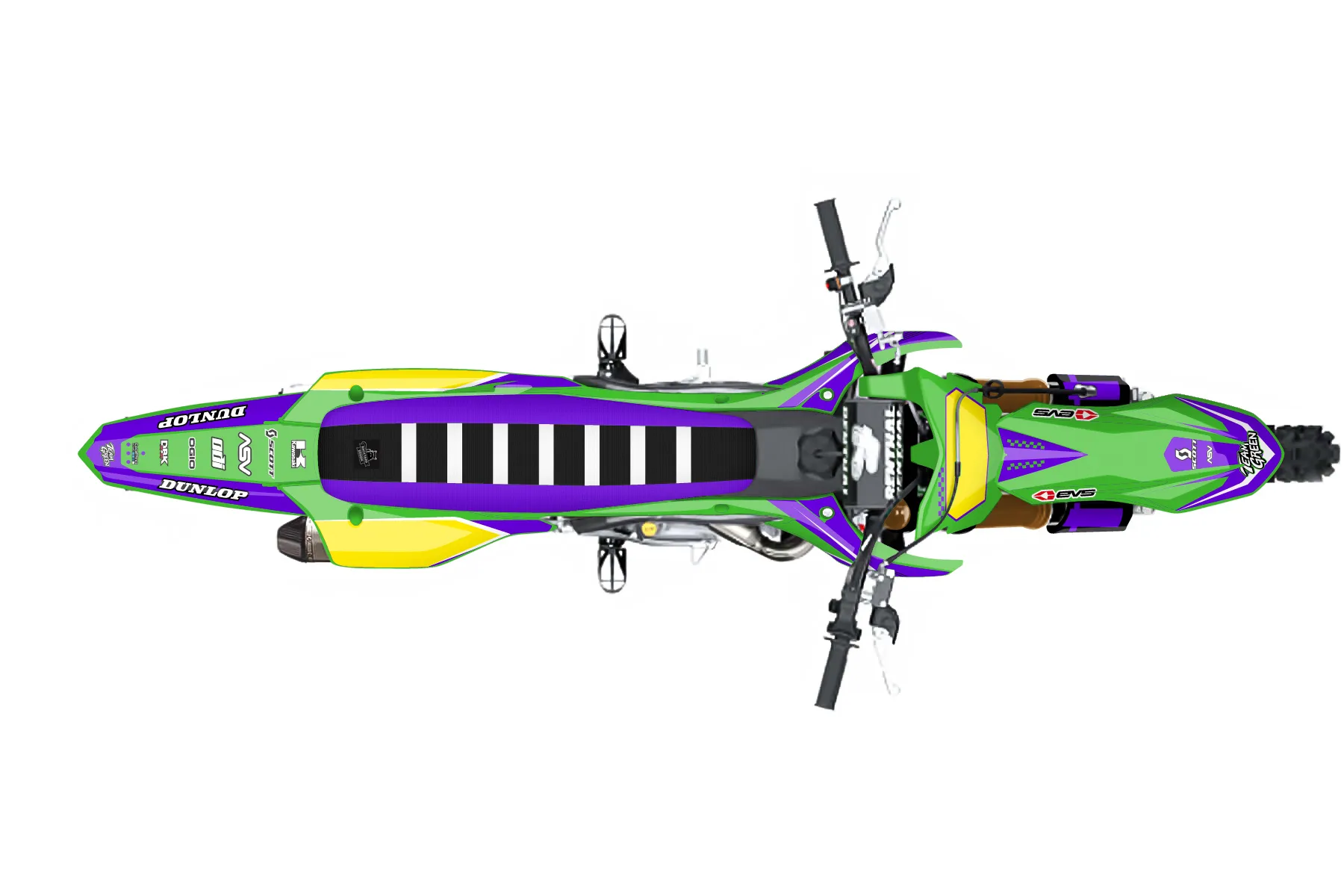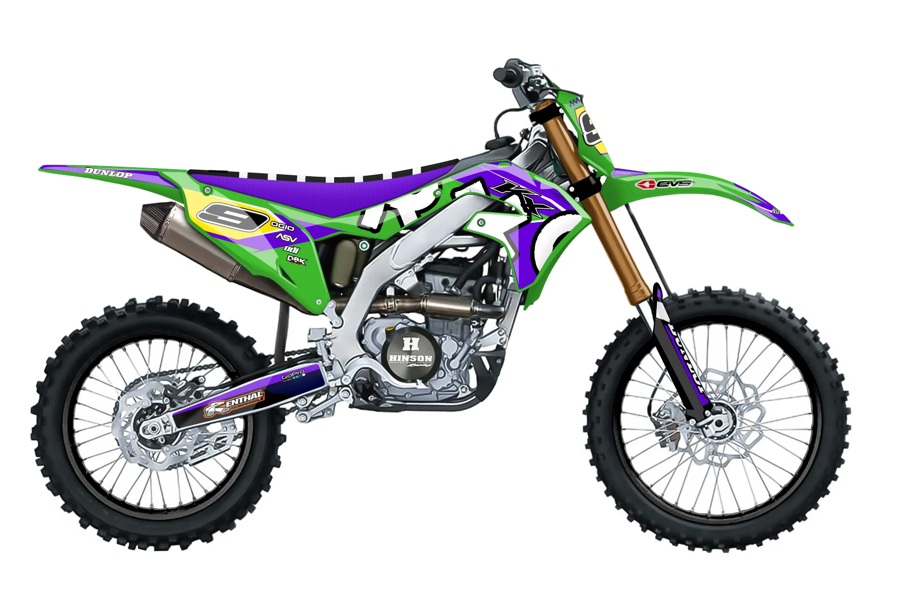 «24 kawi» — готовый комплект графики серии Staple для Kawasaki MX Graphic Kit Kawasaki KX250F 2021. В комплекте: графика на бак и боковые облицовки, крылья (переднее и заднее), передний щиток, номерные таблички, защита вилки. Материал: ПВХ-винил 80 мкр с холодной ламинацией 300 мкр, общая толщина 380 мкр; покрытие глянцевое или матовое на выбор. Устойчив к UV-излучению, воде, бензину и мойке высокого давления. Клей акриловый на сольвентной основе — постоянный, для гибких пластиков. На простых поверхностях монтируется без нагрева; для сложных изгибов рекомендуем фен. Этот пресет можно заказать как есть или взять за основу в конструкторе: поменять цвета, добавить стартовый номер и свой бренд. Производство — 3–5 рабочих дней, доставка по России СДЭКом или Почтой, по СНГ — курьерскими службами.