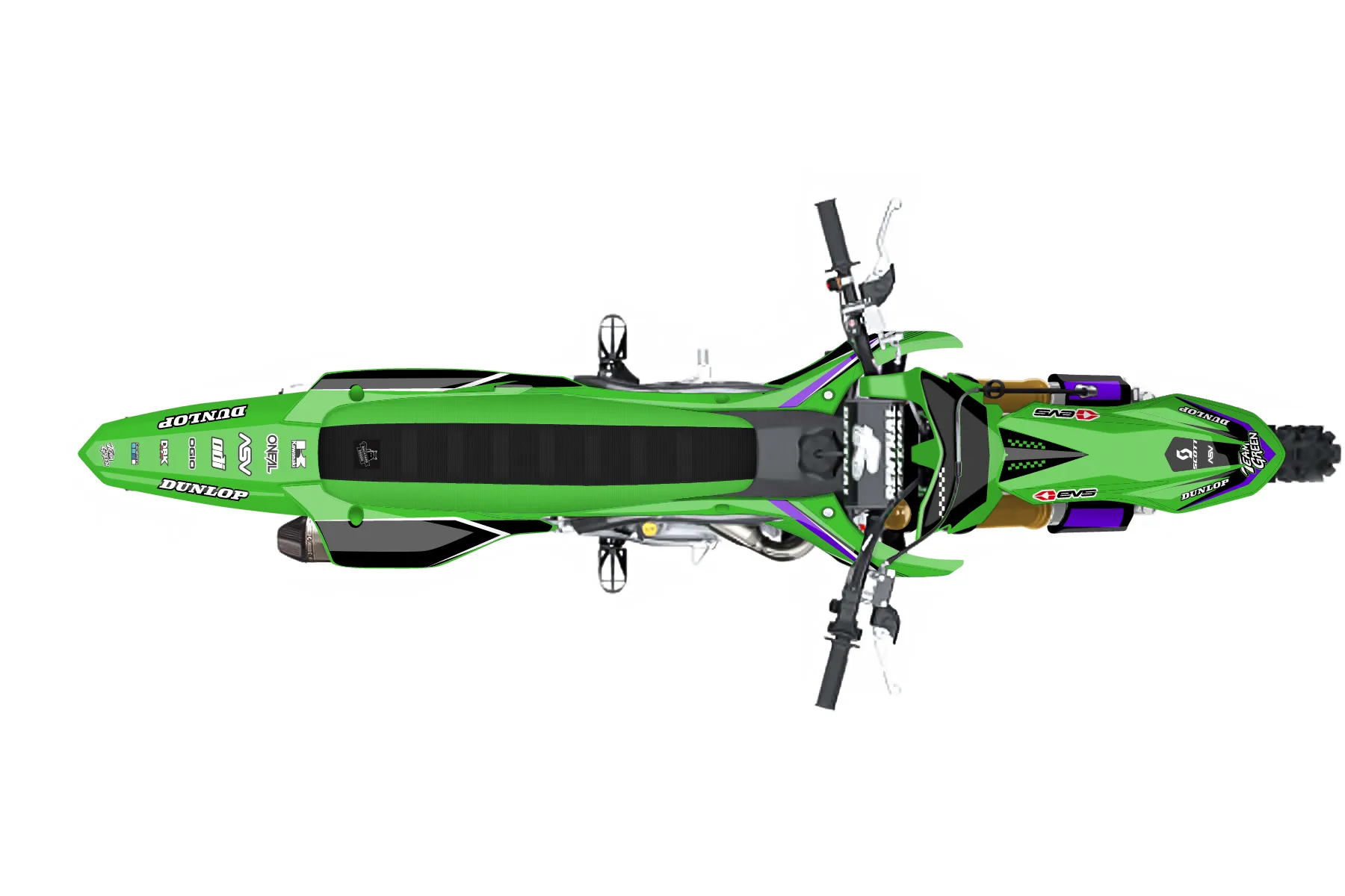 «CustomKaw 1Design» — готовый комплект графики серии Staple для Kawasaki MX Graphic Kit Kawasaki KX250F 2021. В комплекте: графика на бак и боковые облицовки, крылья (переднее и заднее), передний щиток, номерные таблички, защита вилки. Материал: ПВХ-винил 80 мкр с холодной ламинацией 300 мкр, общая толщина 380 мкр; покрытие глянцевое или матовое на выбор. Устойчив к UV-излучению, воде, бензину и мойке высокого давления. Клей акриловый на сольвентной основе — постоянный, для гибких пластиков. На простых поверхностях монтируется без нагрева; для сложных изгибов рекомендуем фен. Этот пресет можно заказать как есть или взять за основу в конструкторе: поменять цвета, добавить стартовый номер и свой бренд. Производство — 3–5 рабочих дней, доставка по России СДЭКом или Почтой, по СНГ — курьерскими службами.