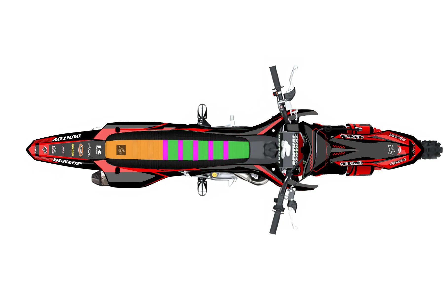 «Fox» — готовый комплект графики серии Staple для Kawasaki MX Graphic Kit Kawasaki KX250F 2021. В комплекте: графика на бак и боковые облицовки, крылья (переднее и заднее), передний щиток, номерные таблички, защита вилки. Материал: ПВХ-винил 80 мкр с холодной ламинацией 300 мкр, общая толщина 380 мкр; покрытие глянцевое или матовое на выбор. Устойчив к UV-излучению, воде, бензину и мойке высокого давления. Клей акриловый на сольвентной основе — постоянный, для гибких пластиков. На простых поверхностях монтируется без нагрева; для сложных изгибов рекомендуем фен. Этот пресет можно заказать как есть или взять за основу в конструкторе: поменять цвета, добавить стартовый номер и свой бренд. Производство — 3–5 рабочих дней, доставка по России СДЭКом или Почтой, по СНГ — курьерскими службами.