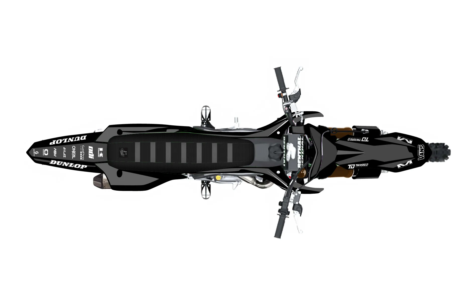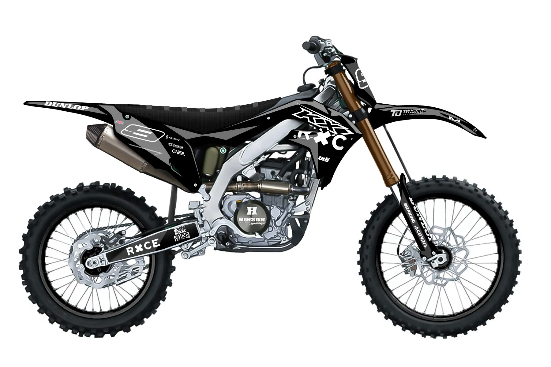 «kx blackout» — готовый комплект графики серии Staple для Kawasaki MX Graphic Kit Kawasaki KX250F 2021. В комплекте: графика на бак и боковые облицовки, крылья (переднее и заднее), передний щиток, номерные таблички, защита вилки. Материал: ПВХ-винил 80 мкр с холодной ламинацией 300 мкр, общая толщина 380 мкр; покрытие глянцевое или матовое на выбор. Устойчив к UV-излучению, воде, бензину и мойке высокого давления. Клей акриловый на сольвентной основе — постоянный, для гибких пластиков. На простых поверхностях монтируется без нагрева; для сложных изгибов рекомендуем фен. Этот пресет можно заказать как есть или взять за основу в конструкторе: поменять цвета, добавить стартовый номер и свой бренд. Производство — 3–5 рабочих дней, доставка по России СДЭКом или Почтой, по СНГ — курьерскими службами.