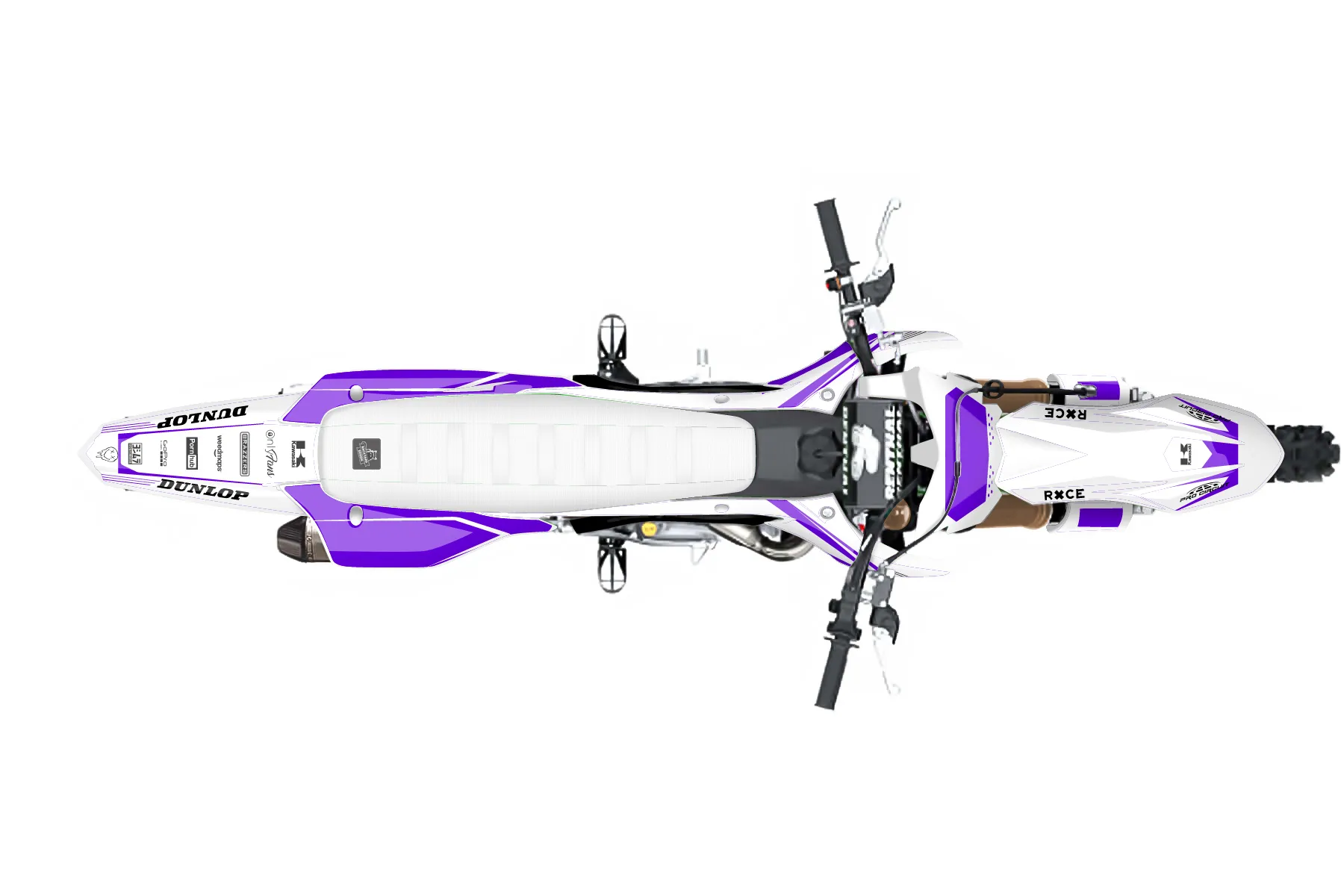 «kx250f 2023 white purple 1» — готовый комплект графики серии Staple для Kawasaki MX Graphic Kit Kawasaki KX250F 2021. В комплекте: графика на бак и боковые облицовки, крылья (переднее и заднее), передний щиток, номерные таблички, защита вилки. Материал: ПВХ-винил 80 мкр с холодной ламинацией 300 мкр, общая толщина 380 мкр; покрытие глянцевое или матовое на выбор. Устойчив к UV-излучению, воде, бензину и мойке высокого давления. Клей акриловый на сольвентной основе — постоянный, для гибких пластиков. На простых поверхностях монтируется без нагрева; для сложных изгибов рекомендуем фен. Этот пресет можно заказать как есть или взять за основу в конструкторе: поменять цвета, добавить стартовый номер и свой бренд. Производство — 3–5 рабочих дней, доставка по России СДЭКом или Почтой, по СНГ — курьерскими службами.