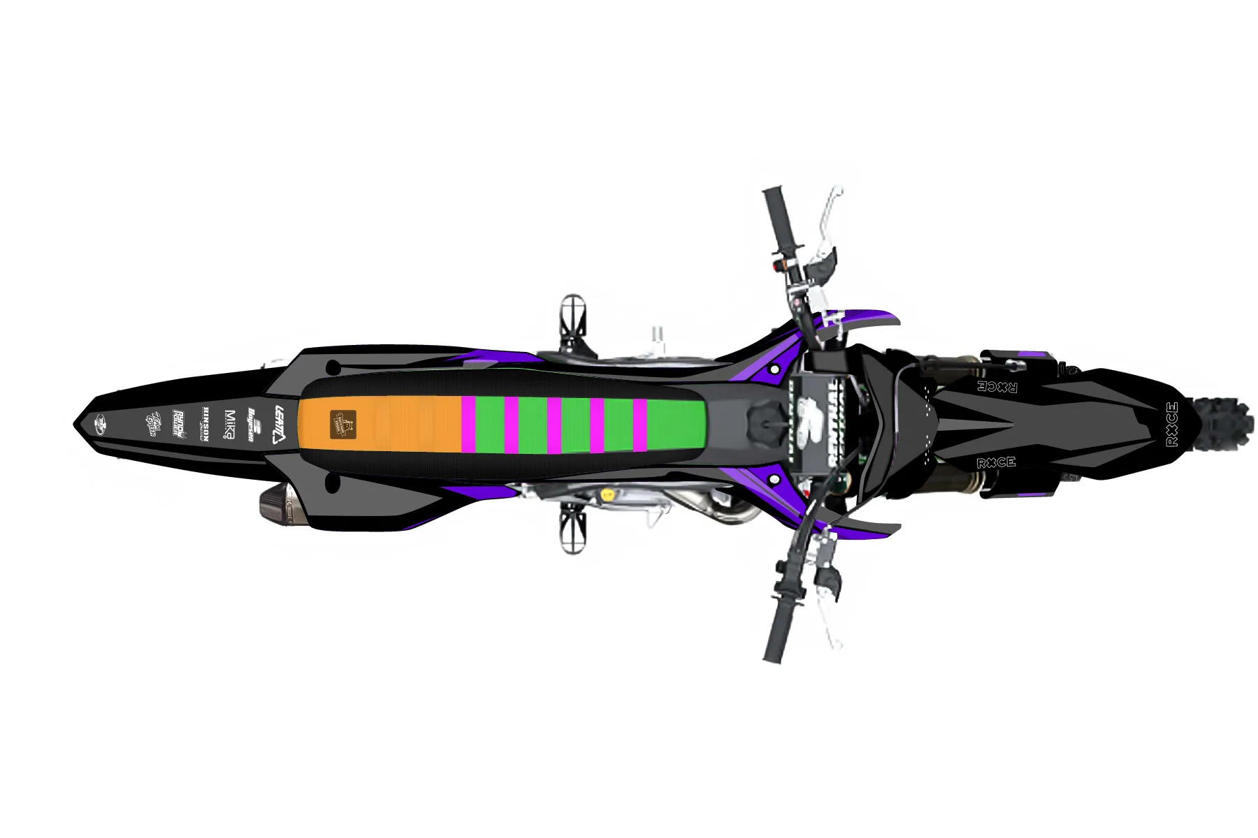 «PurpleAndBlack MAIN» — готовый комплект графики серии Staple для Kawasaki MX Graphic Kit Kawasaki KX250F 2021. В комплекте: графика на бак и боковые облицовки, крылья (переднее и заднее), передний щиток, номерные таблички, защита вилки. Материал: ПВХ-винил 80 мкр с холодной ламинацией 300 мкр, общая толщина 380 мкр; покрытие глянцевое или матовое на выбор. Устойчив к UV-излучению, воде, бензину и мойке высокого давления. Клей акриловый на сольвентной основе — постоянный, для гибких пластиков. На простых поверхностях монтируется без нагрева; для сложных изгибов рекомендуем фен. Этот пресет можно заказать как есть или взять за основу в конструкторе: поменять цвета, добавить стартовый номер и свой бренд. Производство — 3–5 рабочих дней, доставка по России СДЭКом или Почтой, по СНГ — курьерскими службами.