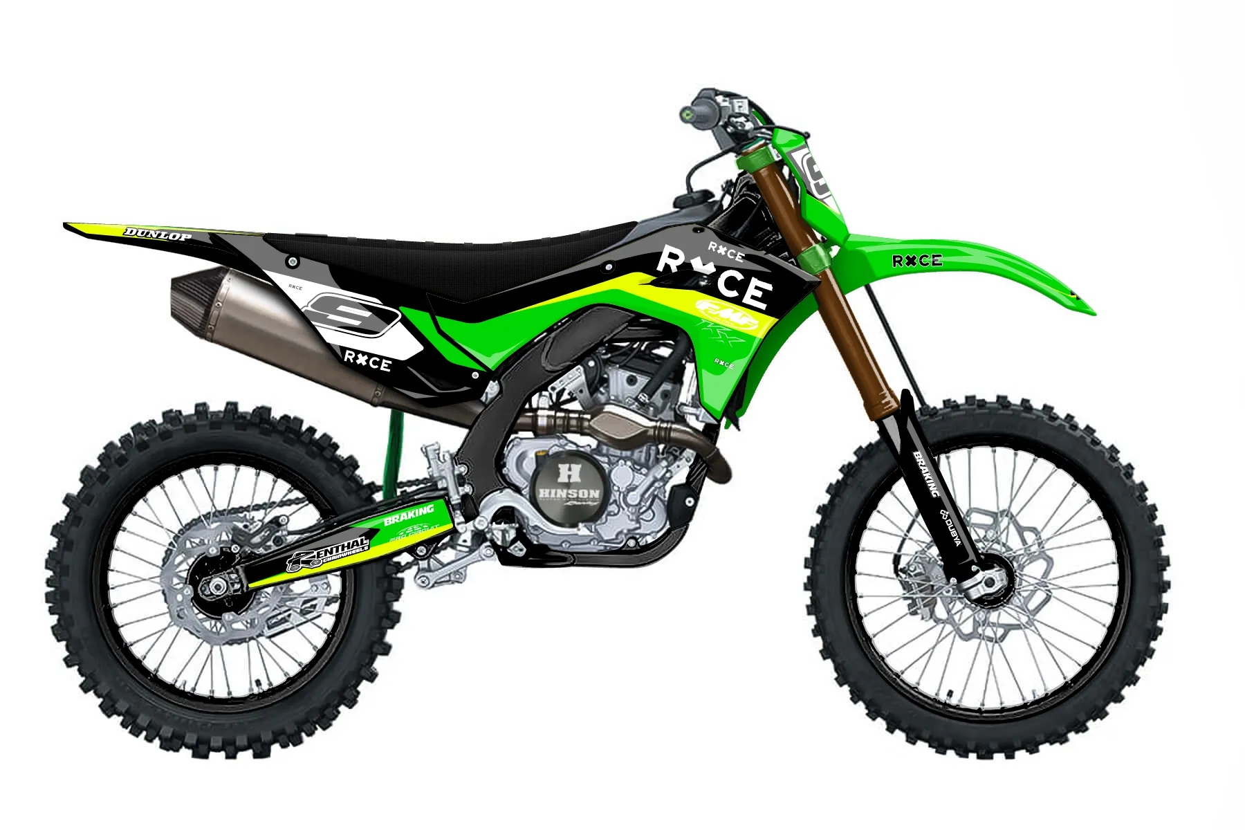 «Bright Neon» — готовый комплект графики серии Flow для Kawasaki MX Graphic Kit Kawasaki KX250F 2025. В комплекте: графика на бак и боковые облицовки, крылья (переднее и заднее), передний щиток, номерные таблички, защита вилки. Материал: ПВХ-винил 80 мкр с холодной ламинацией 300 мкр, общая толщина 380 мкр; покрытие глянцевое или матовое на выбор. Устойчив к UV-излучению, воде, бензину и мойке высокого давления. Клей акриловый на сольвентной основе — постоянный, для гибких пластиков. На простых поверхностях монтируется без нагрева; для сложных изгибов рекомендуем фен. Этот пресет можно заказать как есть или взять за основу в конструкторе: поменять цвета, добавить стартовый номер и свой бренд. Производство — 3–5 рабочих дней, доставка по России СДЭКом или Почтой, по СНГ — курьерскими службами.