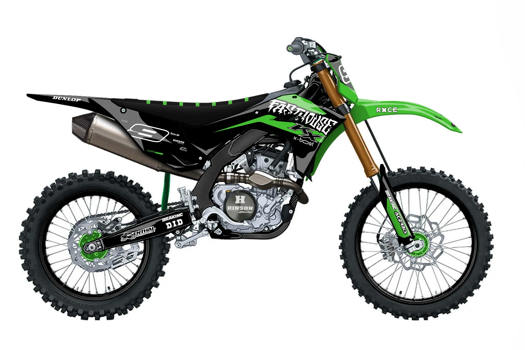 «DesignHouse» — готовый комплект графики серии Flow для Kawasaki MX Graphic Kit Kawasaki KX250F 2025. В комплекте: графика на бак и боковые облицовки, крылья (переднее и заднее), передний щиток, номерные таблички, защита вилки. Материал: ПВХ-винил 80 мкр с холодной ламинацией 300 мкр, общая толщина 380 мкр; покрытие глянцевое или матовое на выбор. Устойчив к UV-излучению, воде, бензину и мойке высокого давления. Клей акриловый на сольвентной основе — постоянный, для гибких пластиков. На простых поверхностях монтируется без нагрева; для сложных изгибов рекомендуем фен. Этот пресет можно заказать как есть или взять за основу в конструкторе: поменять цвета, добавить стартовый номер и свой бренд. Производство — 3–5 рабочих дней, доставка по России СДЭКом или Почтой, по СНГ — курьерскими службами.