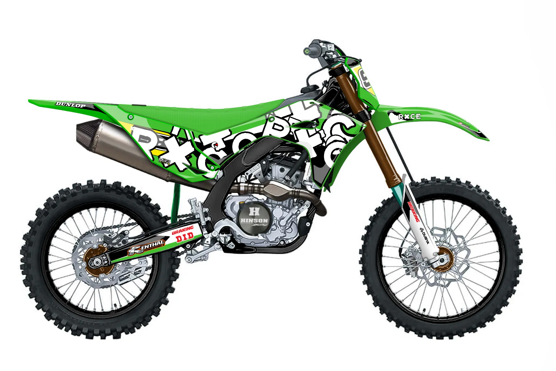 «pc or nah» — готовый комплект графики серии Flow для Kawasaki MX Graphic Kit Kawasaki KX250F 2025. В комплекте: графика на бак и боковые облицовки, крылья (переднее и заднее), передний щиток, номерные таблички, защита вилки. Материал: ПВХ-винил 80 мкр с холодной ламинацией 300 мкр, общая толщина 380 мкр; покрытие глянцевое или матовое на выбор. Устойчив к UV-излучению, воде, бензину и мойке высокого давления. Клей акриловый на сольвентной основе — постоянный, для гибких пластиков. На простых поверхностях монтируется без нагрева; для сложных изгибов рекомендуем фен. Этот пресет можно заказать как есть или взять за основу в конструкторе: поменять цвета, добавить стартовый номер и свой бренд. Производство — 3–5 рабочих дней, доставка по России СДЭКом или Почтой, по СНГ — курьерскими службами.