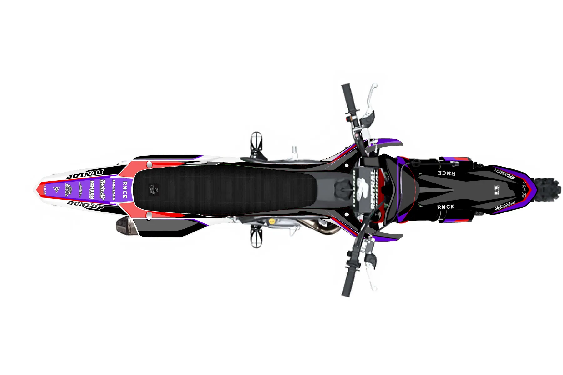 «purple red kiwi» — готовый комплект графики серии Flow для Kawasaki MX Graphic Kit Kawasaki KX250F 2025. В комплекте: графика на бак и боковые облицовки, крылья (переднее и заднее), передний щиток, номерные таблички, защита вилки. Материал: ПВХ-винил 80 мкр с холодной ламинацией 300 мкр, общая толщина 380 мкр; покрытие глянцевое или матовое на выбор. Устойчив к UV-излучению, воде, бензину и мойке высокого давления. Клей акриловый на сольвентной основе — постоянный, для гибких пластиков. На простых поверхностях монтируется без нагрева; для сложных изгибов рекомендуем фен. Этот пресет можно заказать как есть или взять за основу в конструкторе: поменять цвета, добавить стартовый номер и свой бренд. Производство — 3–5 рабочих дней, доставка по России СДЭКом или Почтой, по СНГ — курьерскими службами.