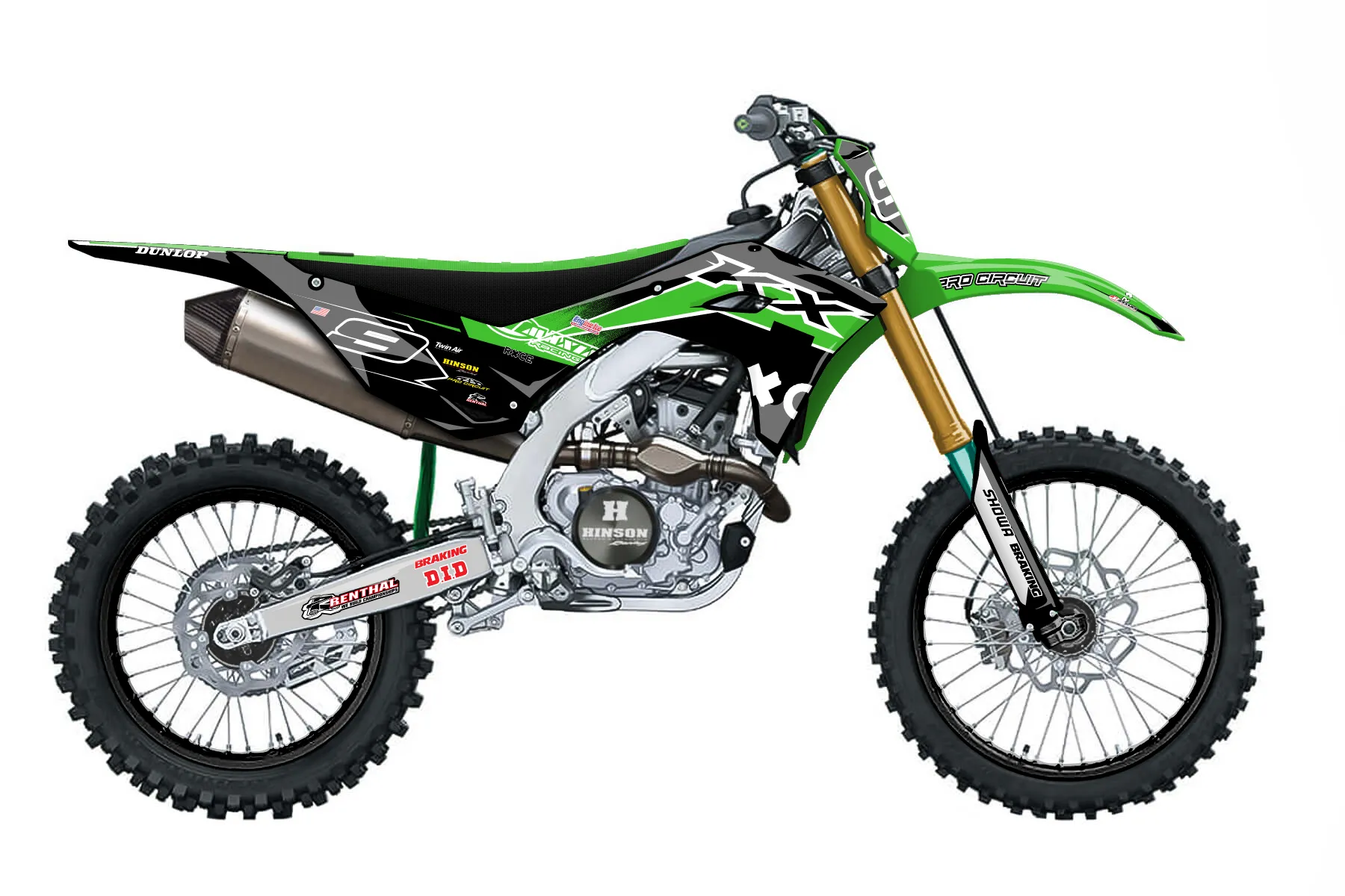 «'25-'26 KXF» — готовый комплект графики серии Maverick для Kawasaki MX Graphic Kit Kawasaki KX250F 2025. В комплекте: графика на бак и боковые облицовки, крылья (переднее и заднее), передний щиток, номерные таблички, защита вилки. Материал: ПВХ-винил 80 мкр с холодной ламинацией 300 мкр, общая толщина 380 мкр; покрытие глянцевое или матовое на выбор. Устойчив к UV-излучению, воде, бензину и мойке высокого давления. Клей акриловый на сольвентной основе — постоянный, для гибких пластиков. На простых поверхностях монтируется без нагрева; для сложных изгибов рекомендуем фен. Этот пресет можно заказать как есть или взять за основу в конструкторе: поменять цвета, добавить стартовый номер и свой бренд. Производство — 3–5 рабочих дней, доставка по России СДЭКом или Почтой, по СНГ — курьерскими службами.