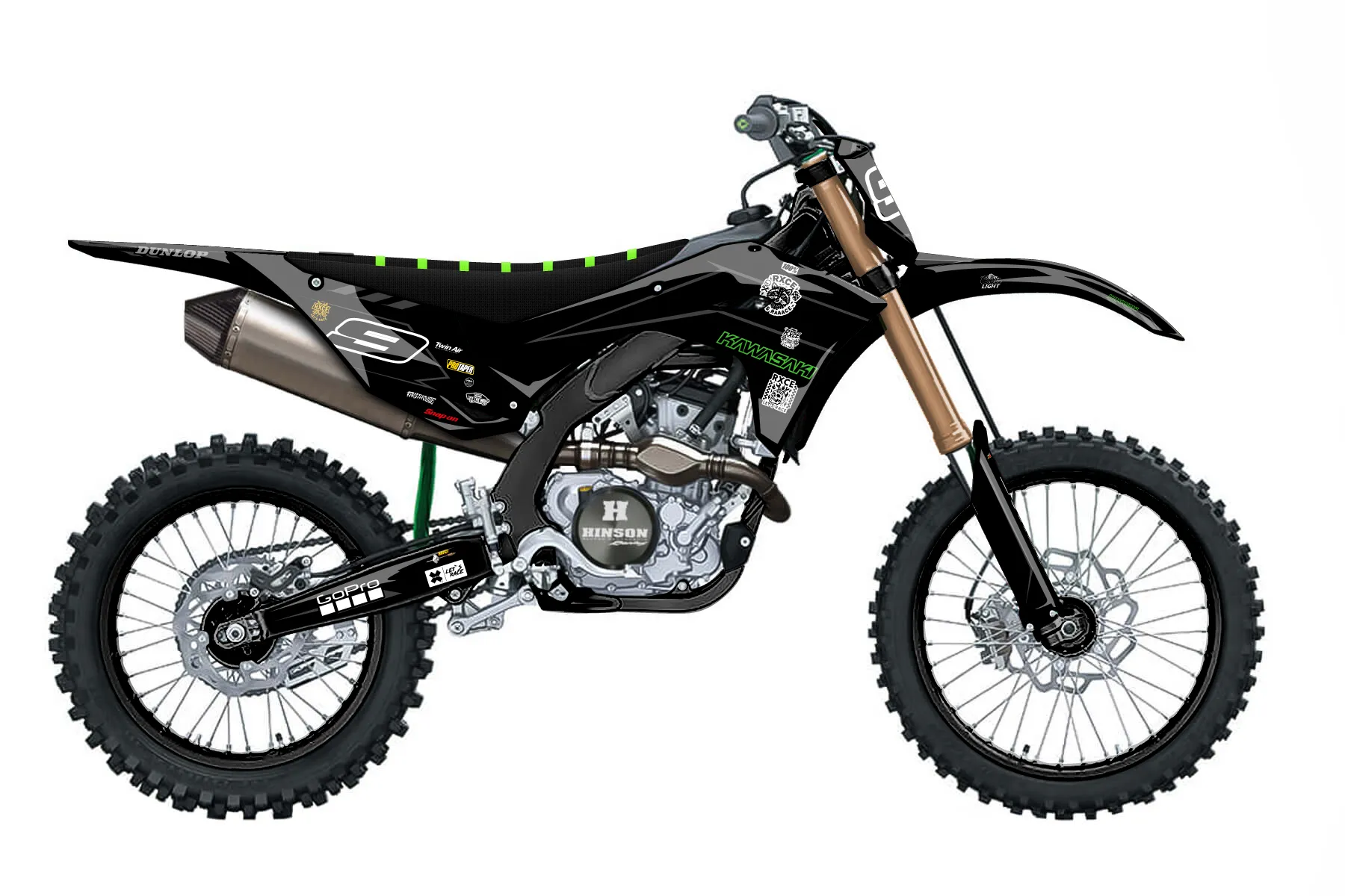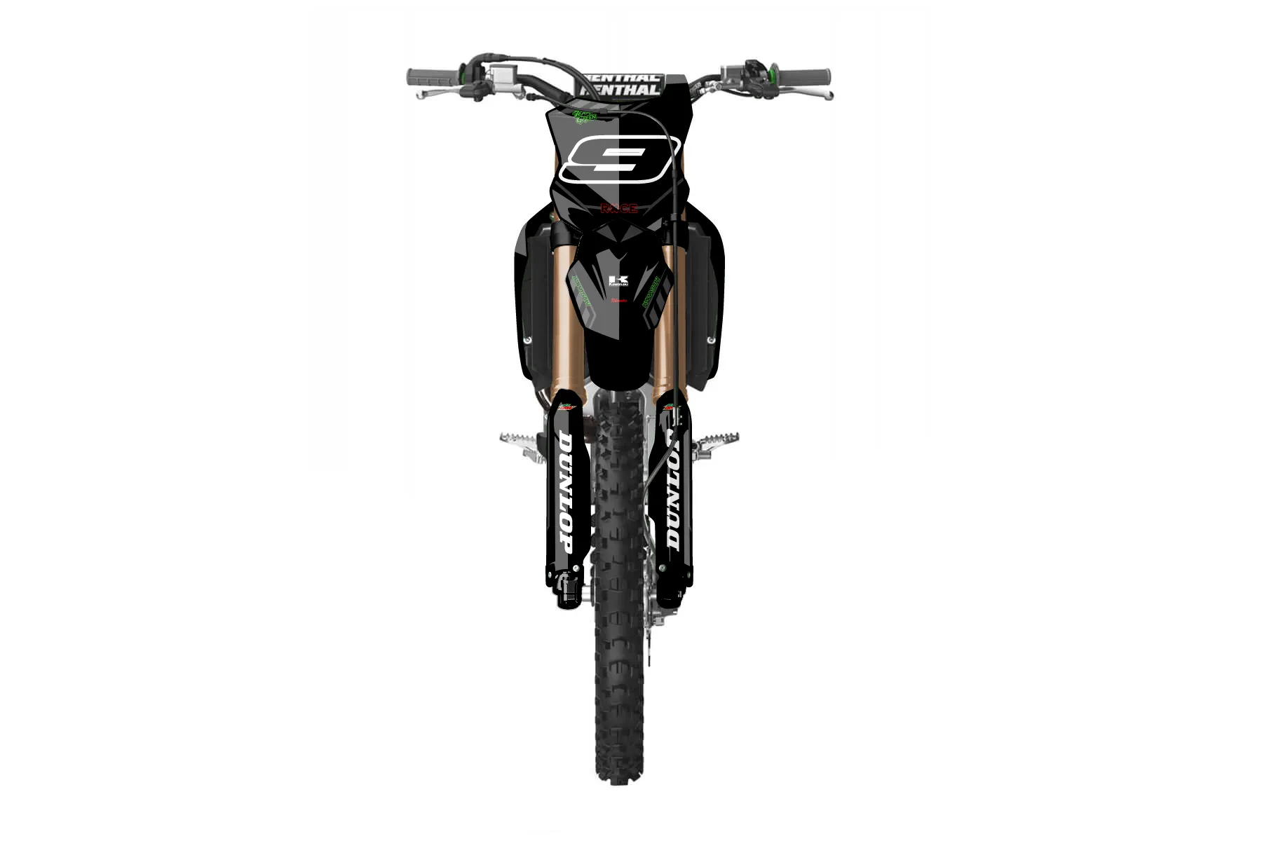 «black/green» — готовый комплект графики серии Maverick для Kawasaki MX Graphic Kit Kawasaki KX250F 2025. В комплекте: графика на бак и боковые облицовки, крылья (переднее и заднее), передний щиток, номерные таблички, защита вилки. Материал: ПВХ-винил 80 мкр с холодной ламинацией 300 мкр, общая толщина 380 мкр; покрытие глянцевое или матовое на выбор. Устойчив к UV-излучению, воде, бензину и мойке высокого давления. Клей акриловый на сольвентной основе — постоянный, для гибких пластиков. На простых поверхностях монтируется без нагрева; для сложных изгибов рекомендуем фен. Этот пресет можно заказать как есть или взять за основу в конструкторе: поменять цвета, добавить стартовый номер и свой бренд. Производство — 3–5 рабочих дней, доставка по России СДЭКом или Почтой, по СНГ — курьерскими службами.