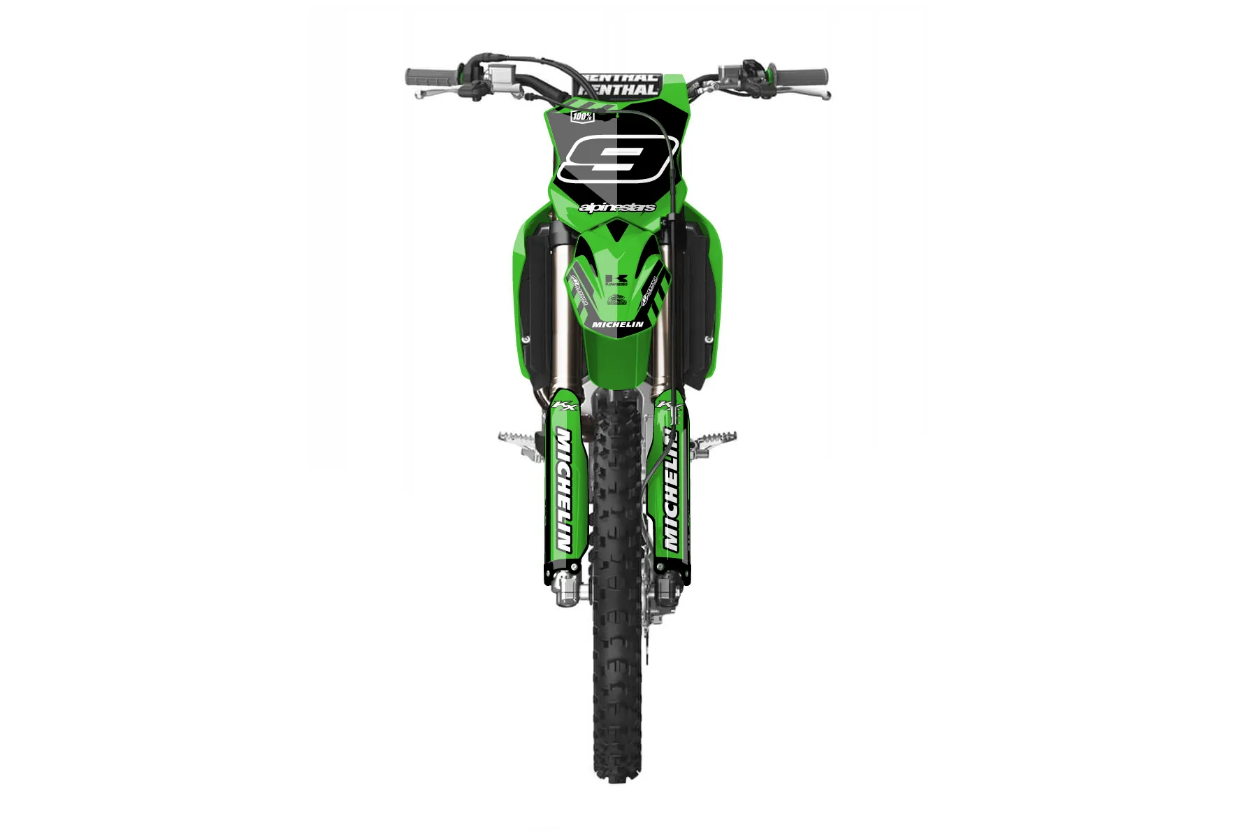 «#greenandblackupdated» — готовый комплект графики серии Maverick для Kawasaki MX Graphic Kit Kawasaki KX250F 2025. В комплекте: графика на бак и боковые облицовки, крылья (переднее и заднее), передний щиток, номерные таблички, защита вилки. Материал: ПВХ-винил 80 мкр с холодной ламинацией 300 мкр, общая толщина 380 мкр; покрытие глянцевое или матовое на выбор. Устойчив к UV-излучению, воде, бензину и мойке высокого давления. Клей акриловый на сольвентной основе — постоянный, для гибких пластиков. На простых поверхностях монтируется без нагрева; для сложных изгибов рекомендуем фен. Этот пресет можно заказать как есть или взять за основу в конструкторе: поменять цвета, добавить стартовый номер и свой бренд. Производство — 3–5 рабочих дней, доставка по России СДЭКом или Почтой, по СНГ — курьерскими службами.