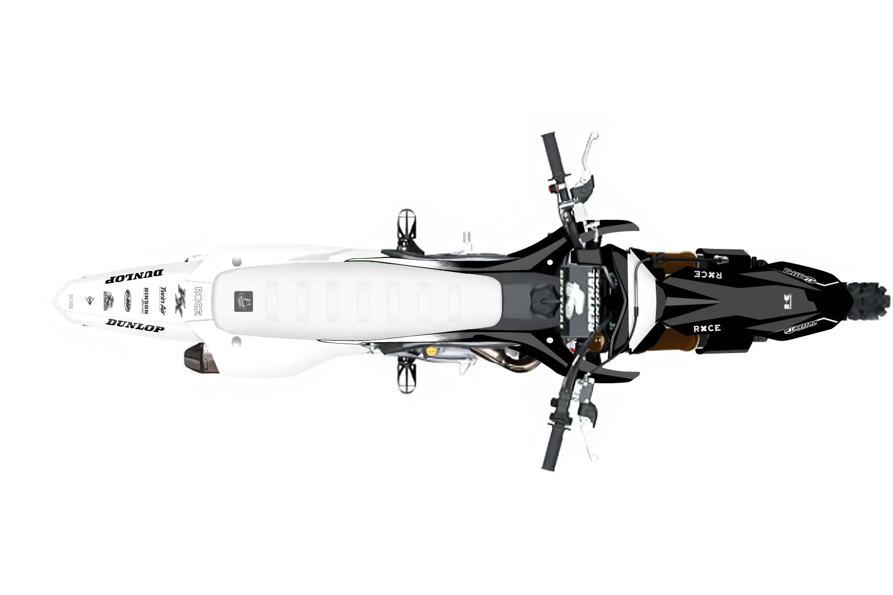 «Mental» — готовый комплект графики серии Maverick для Kawasaki MX Graphic Kit Kawasaki KX250F 2025. В комплекте: графика на бак и боковые облицовки, крылья (переднее и заднее), передний щиток, номерные таблички, защита вилки. Материал: ПВХ-винил 80 мкр с холодной ламинацией 300 мкр, общая толщина 380 мкр; покрытие глянцевое или матовое на выбор. Устойчив к UV-излучению, воде, бензину и мойке высокого давления. Клей акриловый на сольвентной основе — постоянный, для гибких пластиков. На простых поверхностях монтируется без нагрева; для сложных изгибов рекомендуем фен. Этот пресет можно заказать как есть или взять за основу в конструкторе: поменять цвета, добавить стартовый номер и свой бренд. Производство — 3–5 рабочих дней, доставка по России СДЭКом или Почтой, по СНГ — курьерскими службами.