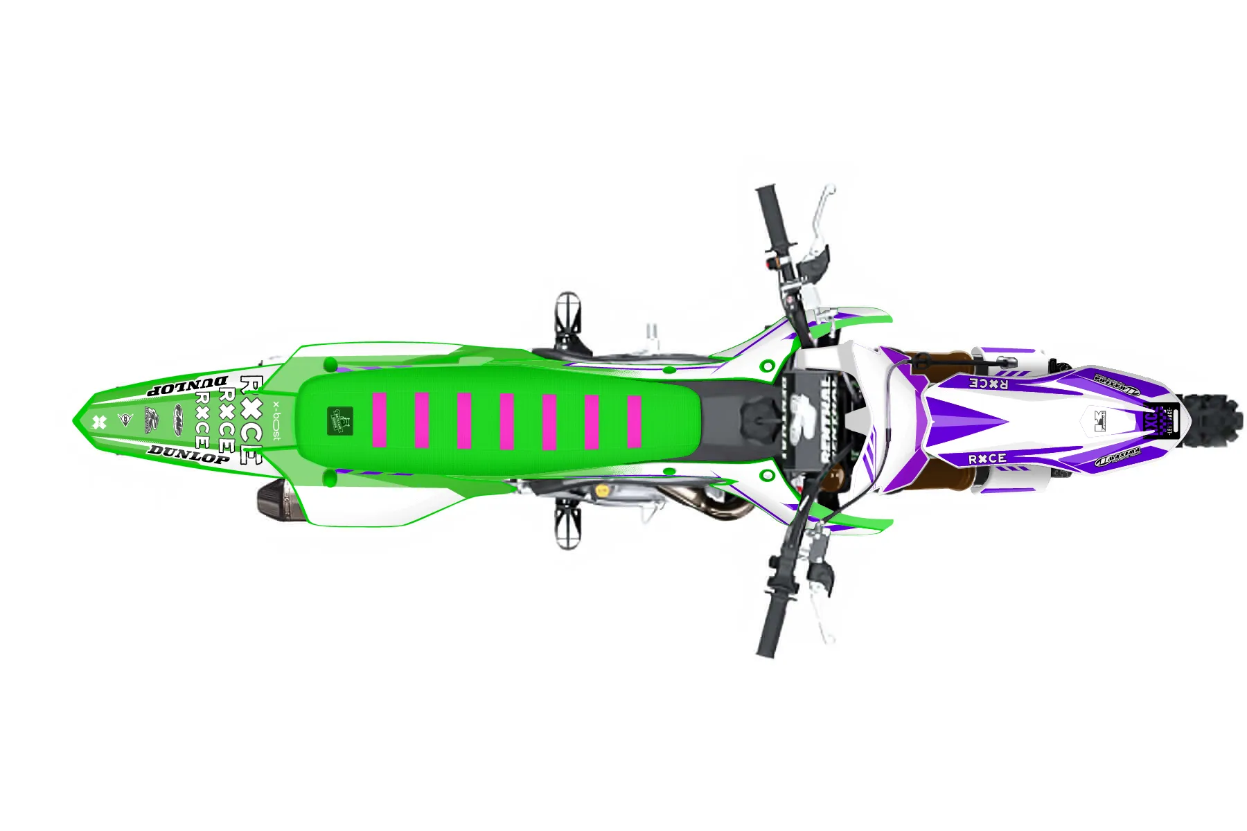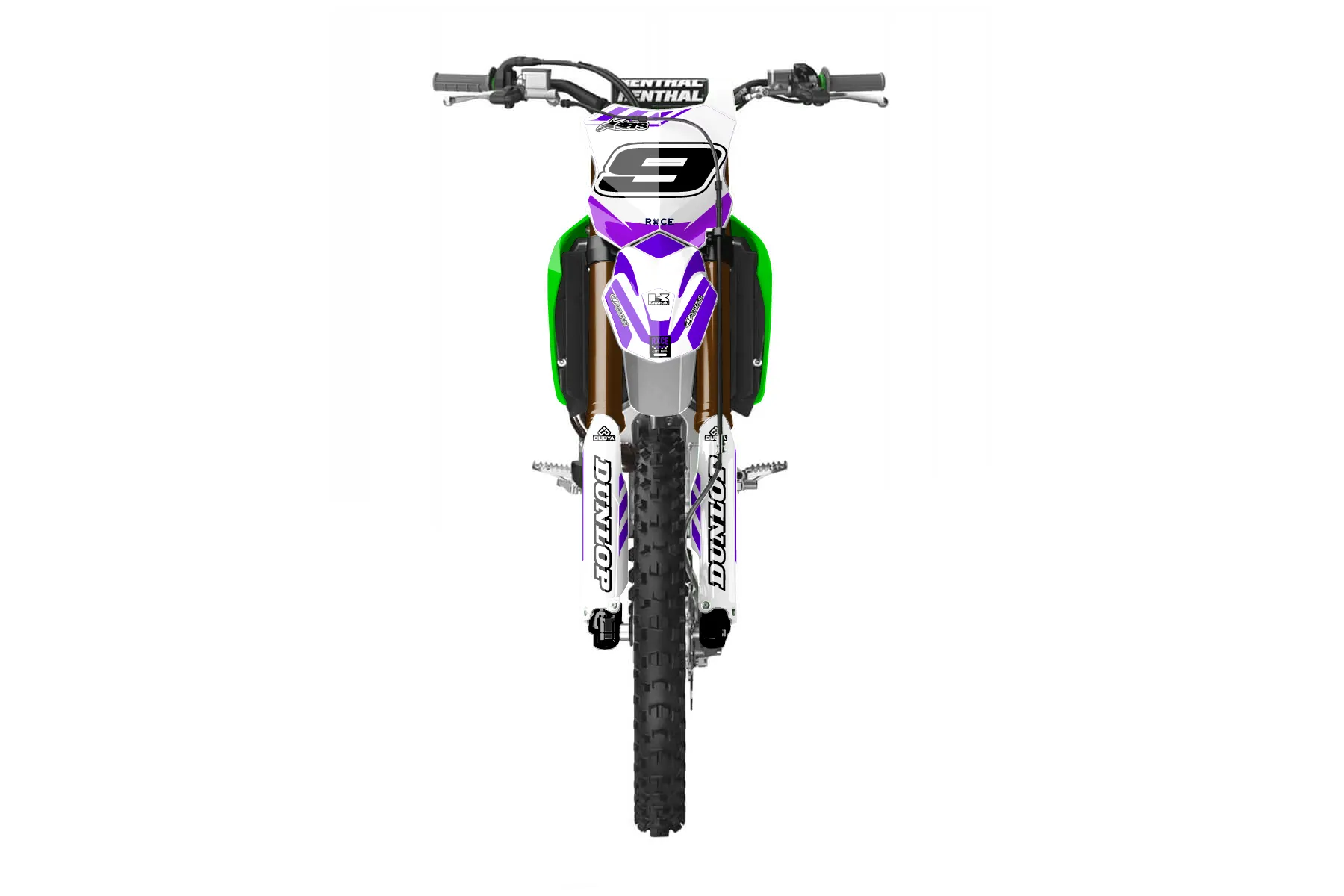 «purple kit» — готовый комплект графики серии Maverick для Kawasaki MX Graphic Kit Kawasaki KX250F 2025. В комплекте: графика на бак и боковые облицовки, крылья (переднее и заднее), передний щиток, номерные таблички, защита вилки. Материал: ПВХ-винил 80 мкр с холодной ламинацией 300 мкр, общая толщина 380 мкр; покрытие глянцевое или матовое на выбор. Устойчив к UV-излучению, воде, бензину и мойке высокого давления. Клей акриловый на сольвентной основе — постоянный, для гибких пластиков. На простых поверхностях монтируется без нагрева; для сложных изгибов рекомендуем фен. Этот пресет можно заказать как есть или взять за основу в конструкторе: поменять цвета, добавить стартовый номер и свой бренд. Производство — 3–5 рабочих дней, доставка по России СДЭКом или Почтой, по СНГ — курьерскими службами.