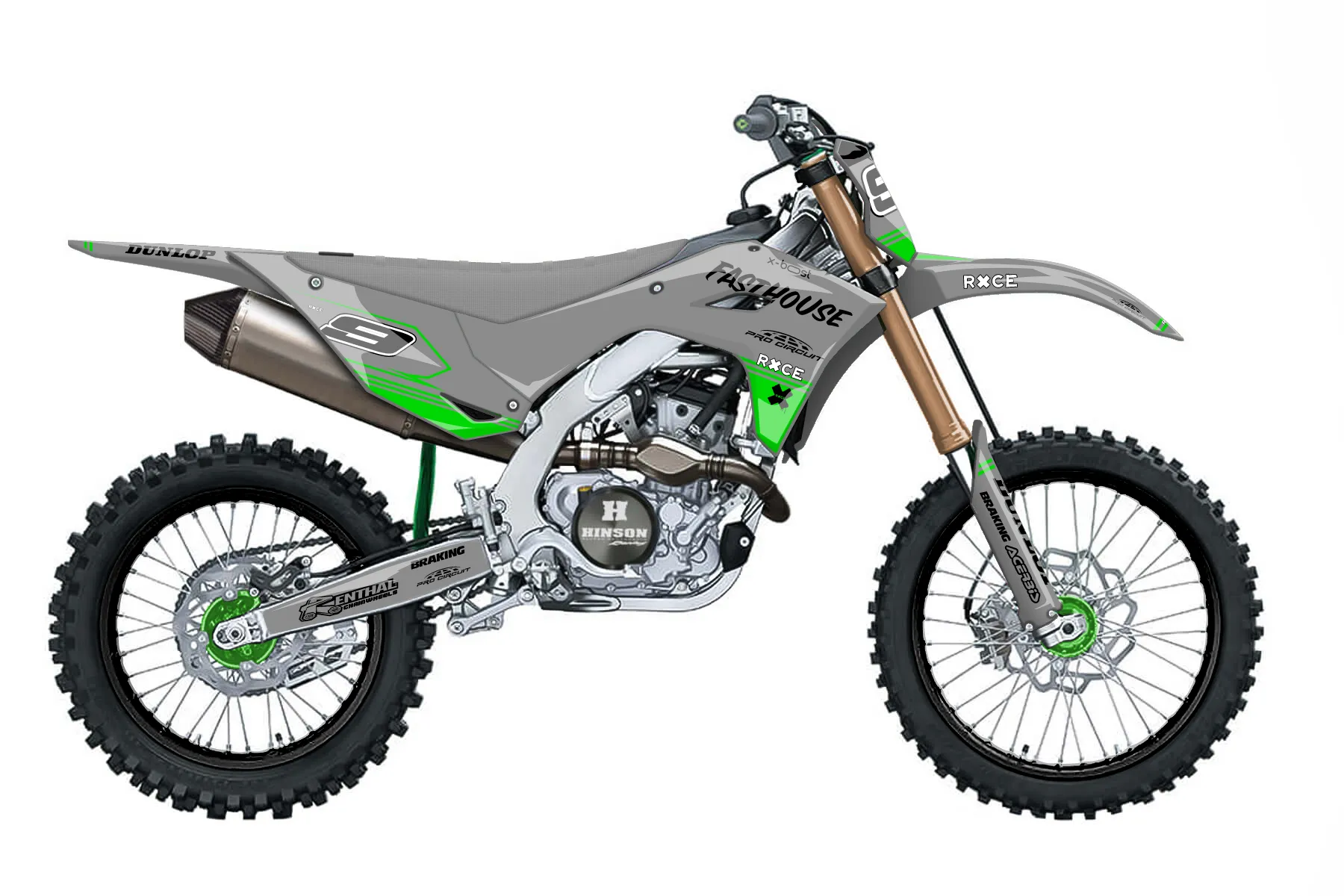 «Speedhouse» — готовый комплект графики серии Untucked для Kawasaki MX Graphic Kit Kawasaki KX250F 2025. В комплекте: графика на бак и боковые облицовки, крылья (переднее и заднее), передний щиток, номерные таблички, защита вилки. Материал: ПВХ-винил 80 мкр с холодной ламинацией 300 мкр, общая толщина 380 мкр; покрытие глянцевое или матовое на выбор. Устойчив к UV-излучению, воде, бензину и мойке высокого давления. Клей акриловый на сольвентной основе — постоянный, для гибких пластиков. На простых поверхностях монтируется без нагрева; для сложных изгибов рекомендуем фен. Этот пресет можно заказать как есть или взять за основу в конструкторе: поменять цвета, добавить стартовый номер и свой бренд. Производство — 3–5 рабочих дней, доставка по России СДЭКом или Почтой, по СНГ — курьерскими службами.