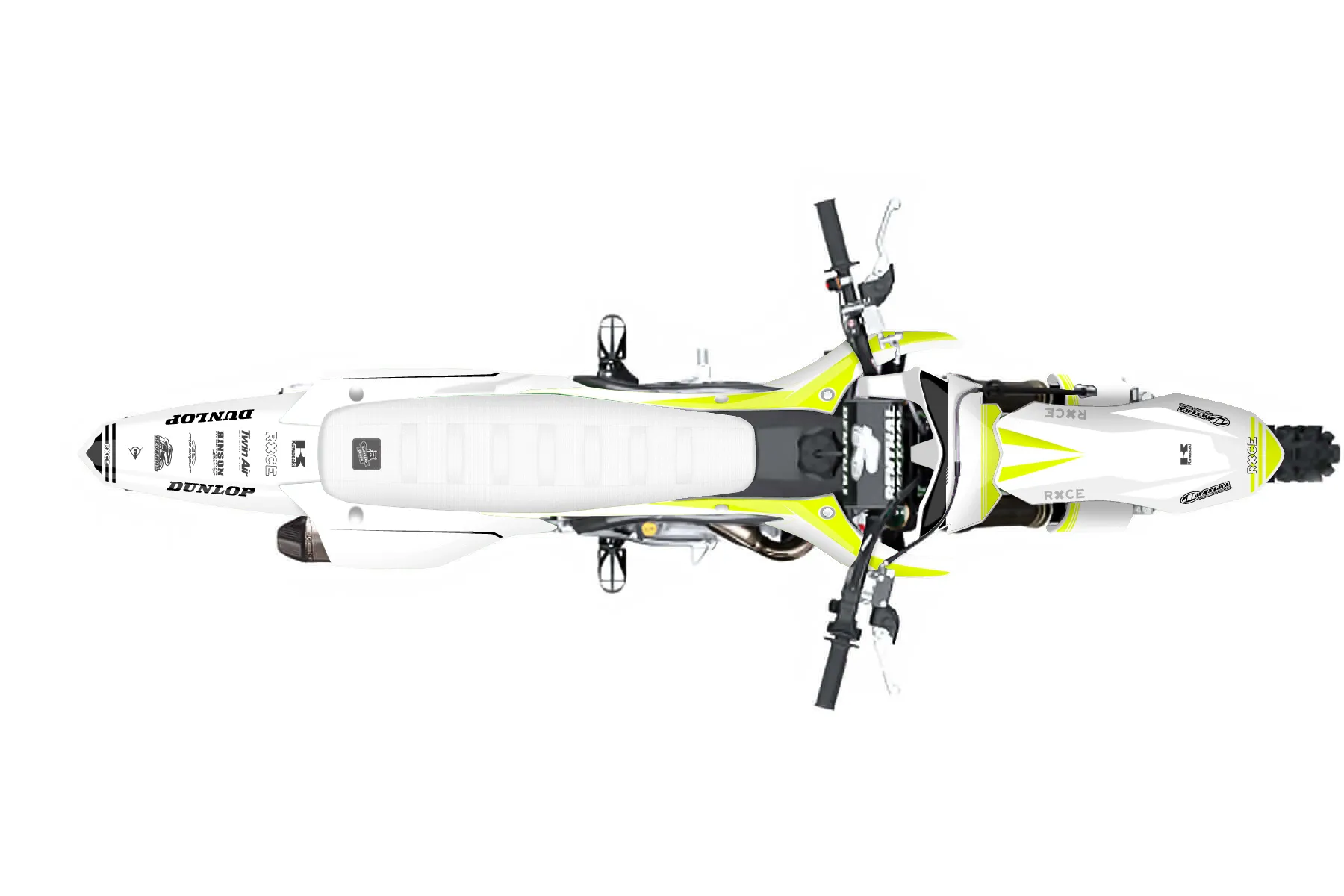 «Vivid Neon» — готовый комплект графики серии Untucked для Kawasaki MX Graphic Kit Kawasaki KX250F 2025. В комплекте: графика на бак и боковые облицовки, крылья (переднее и заднее), передний щиток, номерные таблички, защита вилки. Материал: ПВХ-винил 80 мкр с холодной ламинацией 300 мкр, общая толщина 380 мкр; покрытие глянцевое или матовое на выбор. Устойчив к UV-излучению, воде, бензину и мойке высокого давления. Клей акриловый на сольвентной основе — постоянный, для гибких пластиков. На простых поверхностях монтируется без нагрева; для сложных изгибов рекомендуем фен. Этот пресет можно заказать как есть или взять за основу в конструкторе: поменять цвета, добавить стартовый номер и свой бренд. Производство — 3–5 рабочих дней, доставка по России СДЭКом или Почтой, по СНГ — курьерскими службами.
