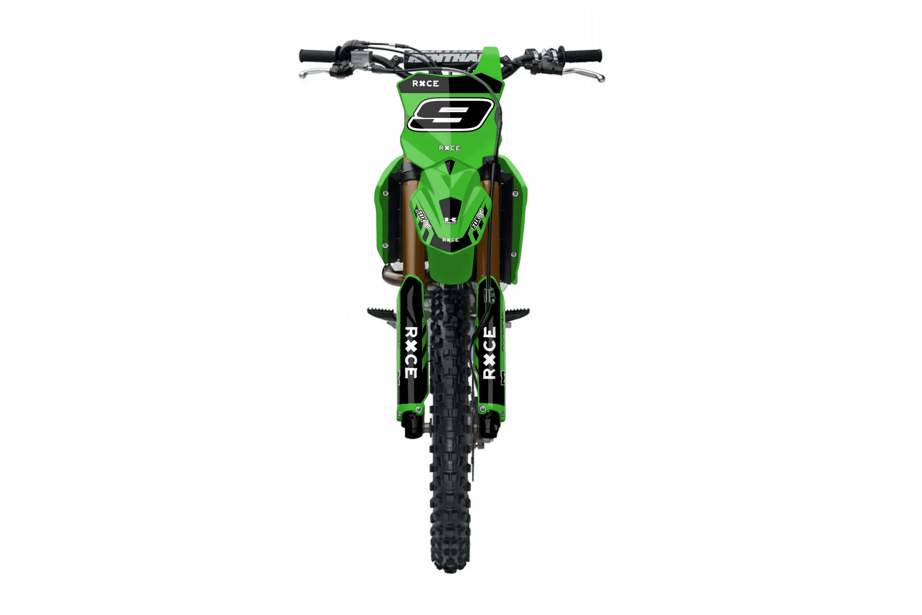 «Jordan Green KX» — готовый комплект графики серии Maverick для Kawasaki MX Graphic Kit Kawasaki KX450F 2016. В комплекте: графика на бак и боковые облицовки, крылья (переднее и заднее), передний щиток, номерные таблички, защита вилки. Материал: ПВХ-винил 80 мкр с холодной ламинацией 300 мкр, общая толщина 380 мкр; покрытие глянцевое или матовое на выбор. Устойчив к UV-излучению, воде, бензину и мойке высокого давления. Клей акриловый на сольвентной основе — постоянный, для гибких пластиков. На простых поверхностях монтируется без нагрева; для сложных изгибов рекомендуем фен. Этот пресет можно заказать как есть или взять за основу в конструкторе: поменять цвета, добавить стартовый номер и свой бренд. Производство — 3–5 рабочих дней, доставка по России СДЭКом или Почтой, по СНГ — курьерскими службами.