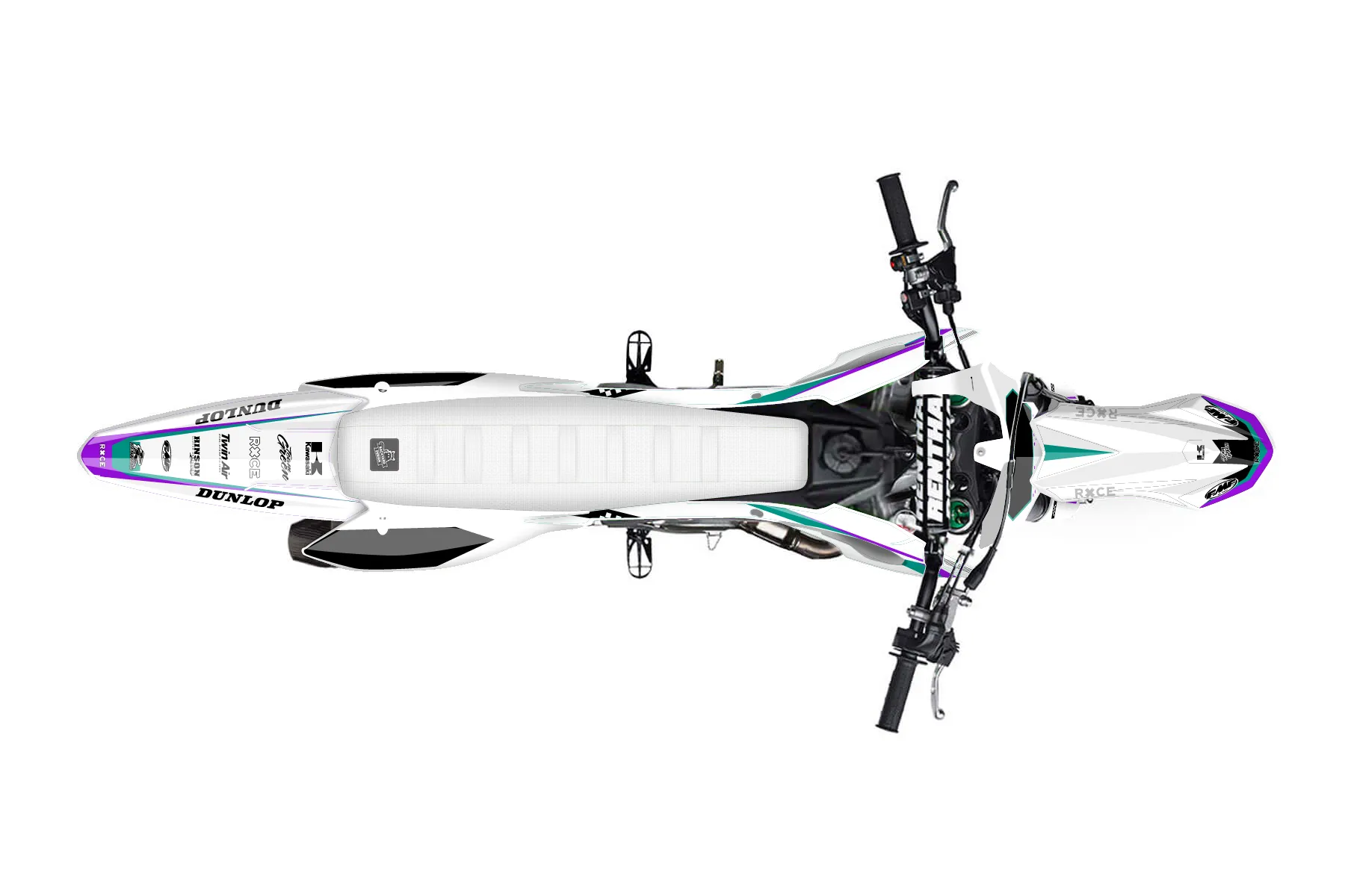 «Signature» — готовый комплект графики серии Staple для Kawasaki MX Graphic Kit Kawasaki KX450F 2016. В комплекте: графика на бак и боковые облицовки, крылья (переднее и заднее), передний щиток, номерные таблички, защита вилки. Материал: ПВХ-винил 80 мкр с холодной ламинацией 300 мкр, общая толщина 380 мкр; покрытие глянцевое или матовое на выбор. Устойчив к UV-излучению, воде, бензину и мойке высокого давления. Клей акриловый на сольвентной основе — постоянный, для гибких пластиков. На простых поверхностях монтируется без нагрева; для сложных изгибов рекомендуем фен. Этот пресет можно заказать как есть или взять за основу в конструкторе: поменять цвета, добавить стартовый номер и свой бренд. Производство — 3–5 рабочих дней, доставка по России СДЭКом или Почтой, по СНГ — курьерскими службами.