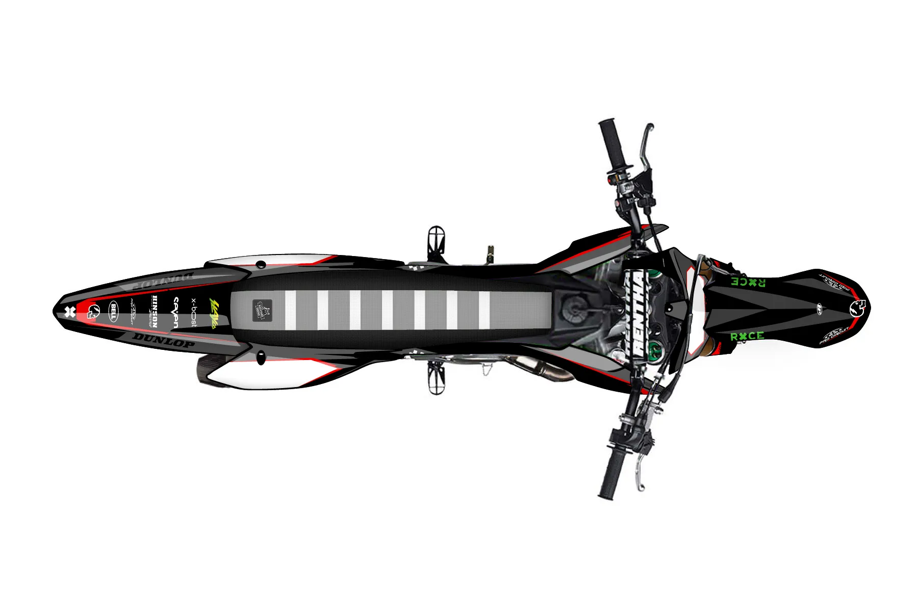 «unfinished 1.1» — готовый комплект графики серии Staple для Kawasaki MX Graphic Kit Kawasaki KX450F 2016. В комплекте: графика на бак и боковые облицовки, крылья (переднее и заднее), передний щиток, номерные таблички, защита вилки. Материал: ПВХ-винил 80 мкр с холодной ламинацией 300 мкр, общая толщина 380 мкр; покрытие глянцевое или матовое на выбор. Устойчив к UV-излучению, воде, бензину и мойке высокого давления. Клей акриловый на сольвентной основе — постоянный, для гибких пластиков. На простых поверхностях монтируется без нагрева; для сложных изгибов рекомендуем фен. Этот пресет можно заказать как есть или взять за основу в конструкторе: поменять цвета, добавить стартовый номер и свой бренд. Производство — 3–5 рабочих дней, доставка по России СДЭКом или Почтой, по СНГ — курьерскими службами.