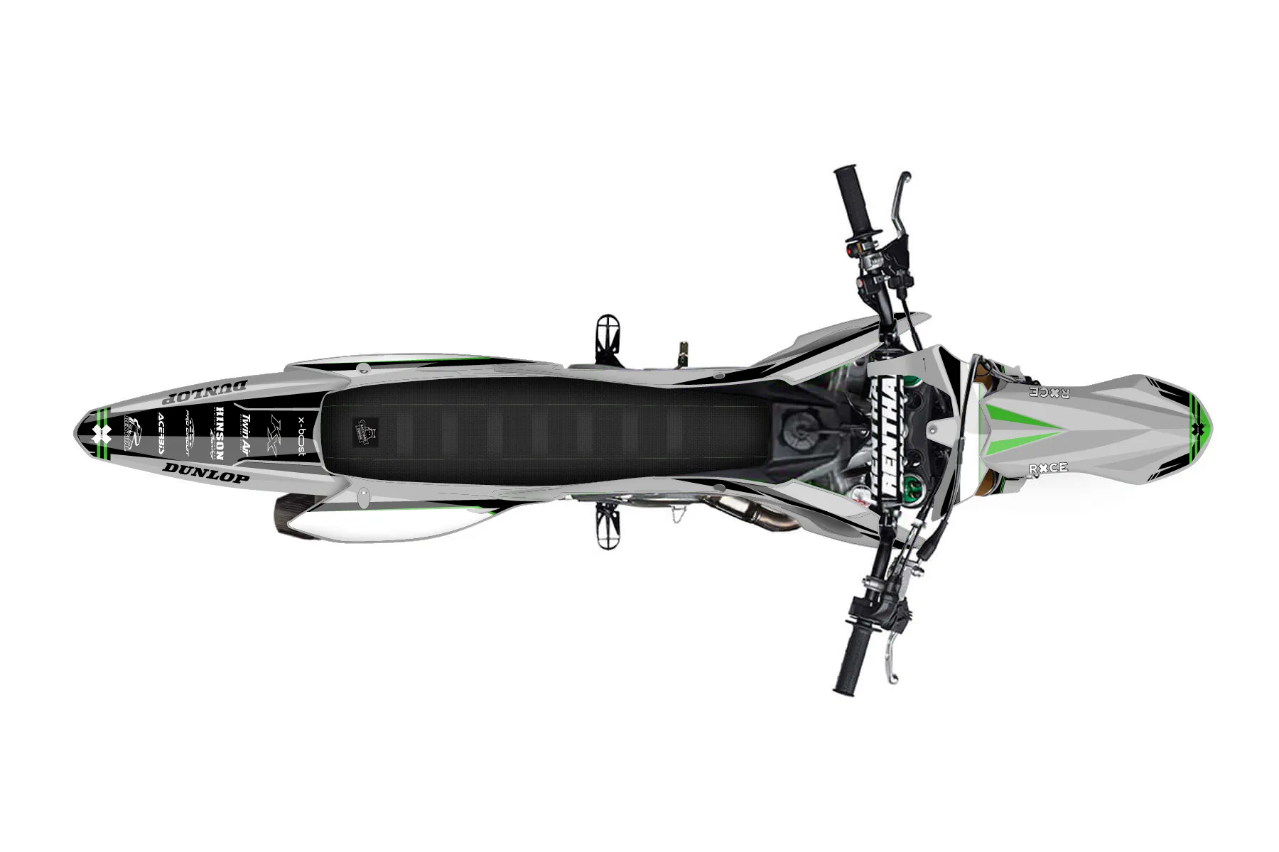 «Concepts» — готовый комплект графики серии Untucked для Kawasaki MX Graphic Kit Kawasaki KX450F 2016. В комплекте: графика на бак и боковые облицовки, крылья (переднее и заднее), передний щиток, номерные таблички, защита вилки. Материал: ПВХ-винил 80 мкр с холодной ламинацией 300 мкр, общая толщина 380 мкр; покрытие глянцевое или матовое на выбор. Устойчив к UV-излучению, воде, бензину и мойке высокого давления. Клей акриловый на сольвентной основе — постоянный, для гибких пластиков. На простых поверхностях монтируется без нагрева; для сложных изгибов рекомендуем фен. Этот пресет можно заказать как есть или взять за основу в конструкторе: поменять цвета, добавить стартовый номер и свой бренд. Производство — 3–5 рабочих дней, доставка по России СДЭКом или Почтой, по СНГ — курьерскими службами.