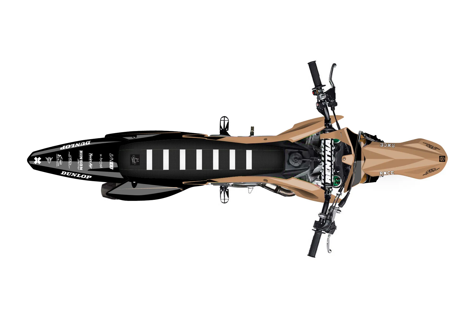«Cozy» — готовый комплект графики серии Untucked для Kawasaki MX Graphic Kit Kawasaki KX450F 2016. В комплекте: графика на бак и боковые облицовки, крылья (переднее и заднее), передний щиток, номерные таблички, защита вилки. Материал: ПВХ-винил 80 мкр с холодной ламинацией 300 мкр, общая толщина 380 мкр; покрытие глянцевое или матовое на выбор. Устойчив к UV-излучению, воде, бензину и мойке высокого давления. Клей акриловый на сольвентной основе — постоянный, для гибких пластиков. На простых поверхностях монтируется без нагрева; для сложных изгибов рекомендуем фен. Этот пресет можно заказать как есть или взять за основу в конструкторе: поменять цвета, добавить стартовый номер и свой бренд. Производство — 3–5 рабочих дней, доставка по России СДЭКом или Почтой, по СНГ — курьерскими службами.