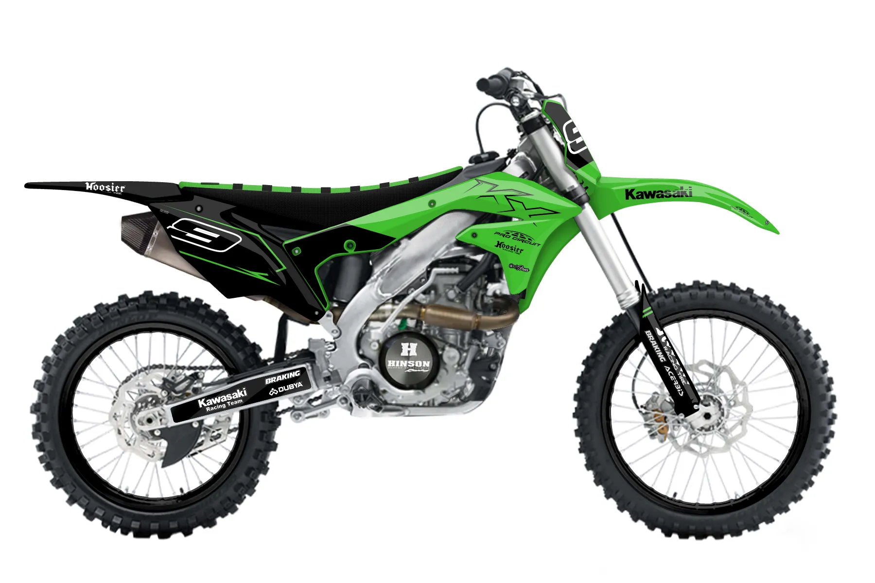 «The One » — готовый комплект графики серии Untucked для Kawasaki MX Graphic Kit Kawasaki KX450F 2016. В комплекте: графика на бак и боковые облицовки, крылья (переднее и заднее), передний щиток, номерные таблички, защита вилки. Материал: ПВХ-винил 80 мкр с холодной ламинацией 300 мкр, общая толщина 380 мкр; покрытие глянцевое или матовое на выбор. Устойчив к UV-излучению, воде, бензину и мойке высокого давления. Клей акриловый на сольвентной основе — постоянный, для гибких пластиков. На простых поверхностях монтируется без нагрева; для сложных изгибов рекомендуем фен. Этот пресет можно заказать как есть или взять за основу в конструкторе: поменять цвета, добавить стартовый номер и свой бренд. Производство — 3–5 рабочих дней, доставка по России СДЭКом или Почтой, по СНГ — курьерскими службами.