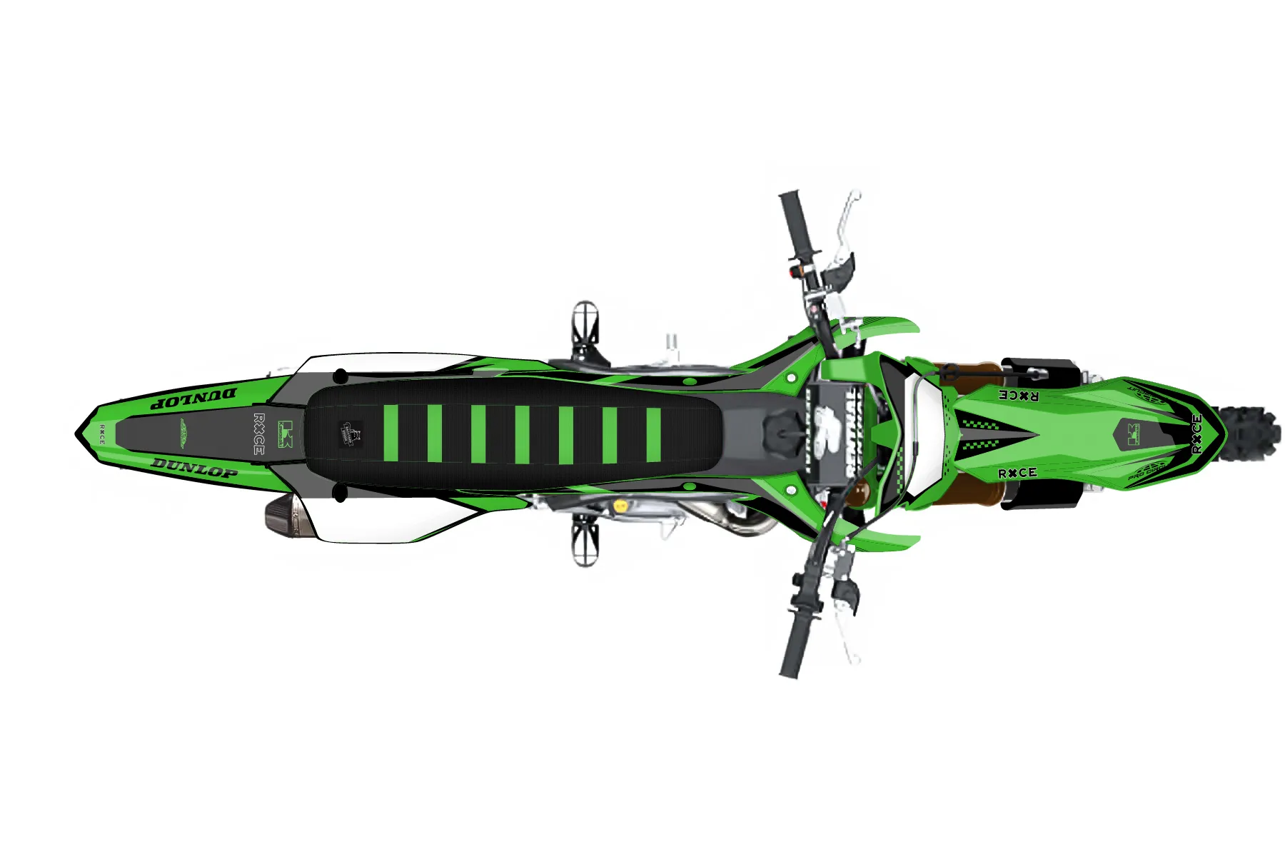 «437 BLK/GRN 2» — готовый комплект графики серии Staple для Kawasaki MX Graphic Kit Kawasaki KX450F 2019. В комплекте: графика на бак и боковые облицовки, крылья (переднее и заднее), передний щиток, номерные таблички, защита вилки. Материал: ПВХ-винил 80 мкр с холодной ламинацией 300 мкр, общая толщина 380 мкр; покрытие глянцевое или матовое на выбор. Устойчив к UV-излучению, воде, бензину и мойке высокого давления. Клей акриловый на сольвентной основе — постоянный, для гибких пластиков. На простых поверхностях монтируется без нагрева; для сложных изгибов рекомендуем фен. Этот пресет можно заказать как есть или взять за основу в конструкторе: поменять цвета, добавить стартовый номер и свой бренд. Производство — 3–5 рабочих дней, доставка по России СДЭКом или Почтой, по СНГ — курьерскими службами.