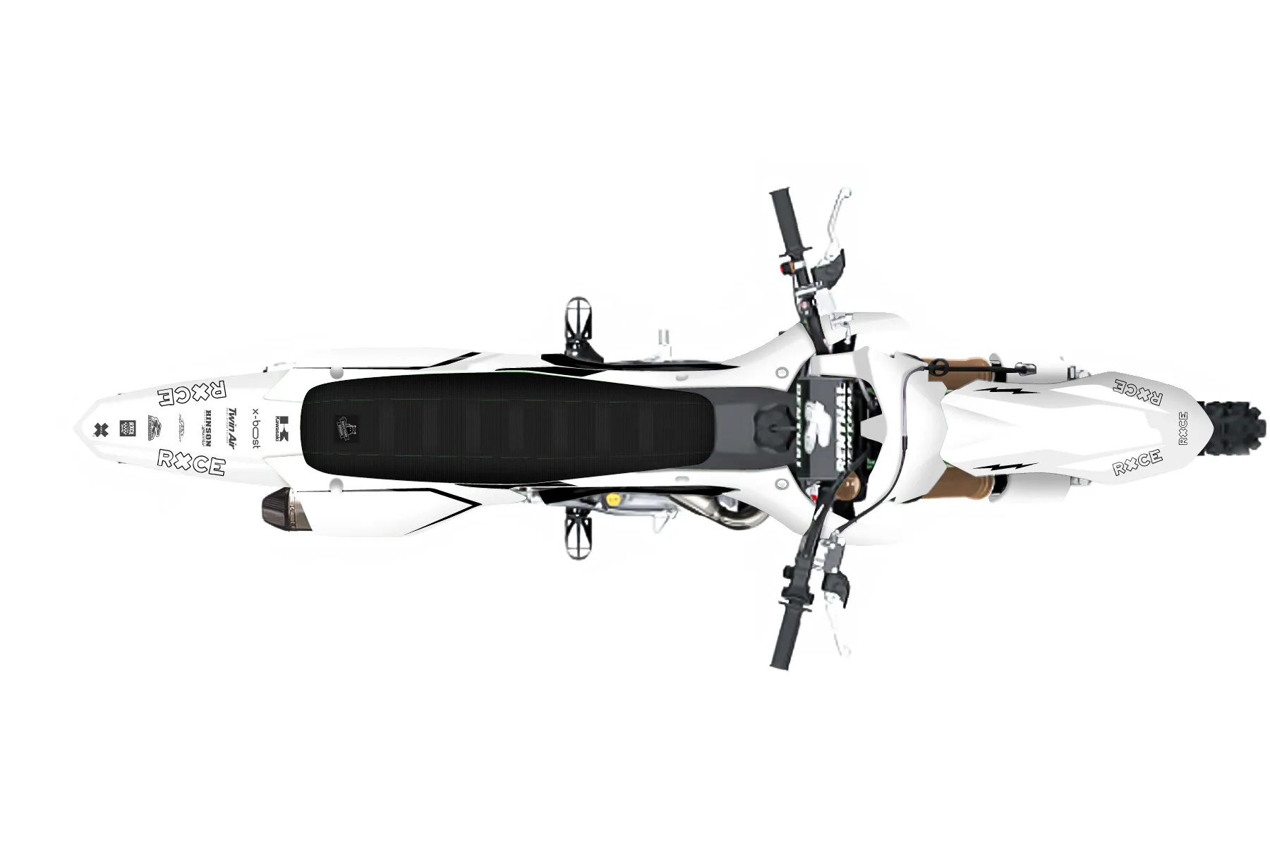 «carterfmx» — готовый комплект графики серии Staple для Kawasaki MX Graphic Kit Kawasaki KX450F 2019. В комплекте: графика на бак и боковые облицовки, крылья (переднее и заднее), передний щиток, номерные таблички, защита вилки. Материал: ПВХ-винил 80 мкр с холодной ламинацией 300 мкр, общая толщина 380 мкр; покрытие глянцевое или матовое на выбор. Устойчив к UV-излучению, воде, бензину и мойке высокого давления. Клей акриловый на сольвентной основе — постоянный, для гибких пластиков. На простых поверхностях монтируется без нагрева; для сложных изгибов рекомендуем фен. Этот пресет можно заказать как есть или взять за основу в конструкторе: поменять цвета, добавить стартовый номер и свой бренд. Производство — 3–5 рабочих дней, доставка по России СДЭКом или Почтой, по СНГ — курьерскими службами.