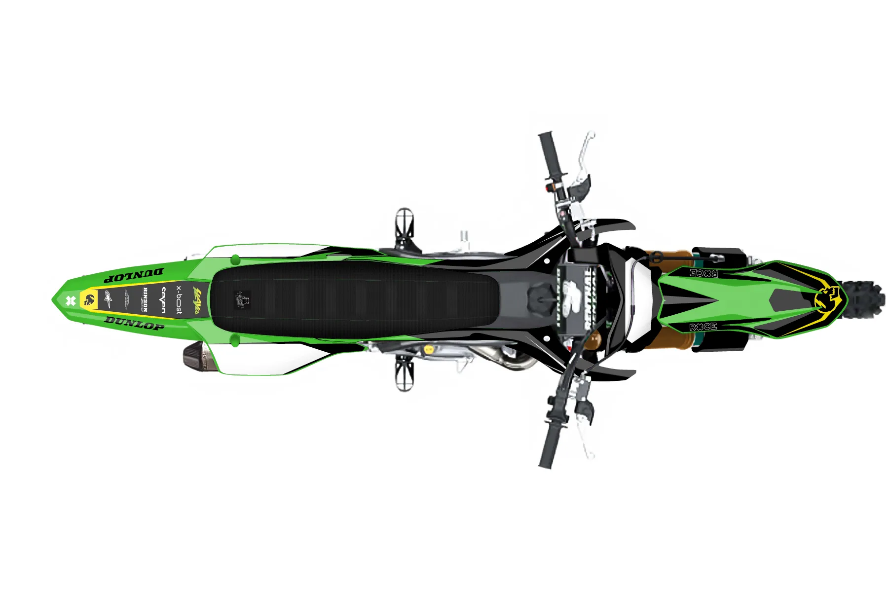 «finished kawi» — готовый комплект графики серии Staple для Kawasaki MX Graphic Kit Kawasaki KX450F 2019. В комплекте: графика на бак и боковые облицовки, крылья (переднее и заднее), передний щиток, номерные таблички, защита вилки. Материал: ПВХ-винил 80 мкр с холодной ламинацией 300 мкр, общая толщина 380 мкр; покрытие глянцевое или матовое на выбор. Устойчив к UV-излучению, воде, бензину и мойке высокого давления. Клей акриловый на сольвентной основе — постоянный, для гибких пластиков. На простых поверхностях монтируется без нагрева; для сложных изгибов рекомендуем фен. Этот пресет можно заказать как есть или взять за основу в конструкторе: поменять цвета, добавить стартовый номер и свой бренд. Производство — 3–5 рабочих дней, доставка по России СДЭКом или Почтой, по СНГ — курьерскими службами.