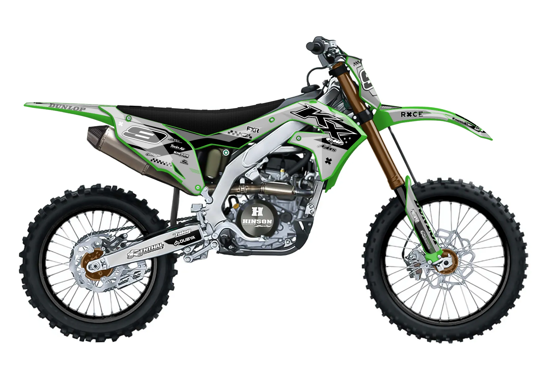 «Grey Design» — готовый комплект графики серии Staple для Kawasaki MX Graphic Kit Kawasaki KX450F 2019. В комплекте: графика на бак и боковые облицовки, крылья (переднее и заднее), передний щиток, номерные таблички, защита вилки. Материал: ПВХ-винил 80 мкр с холодной ламинацией 300 мкр, общая толщина 380 мкр; покрытие глянцевое или матовое на выбор. Устойчив к UV-излучению, воде, бензину и мойке высокого давления. Клей акриловый на сольвентной основе — постоянный, для гибких пластиков. На простых поверхностях монтируется без нагрева; для сложных изгибов рекомендуем фен. Этот пресет можно заказать как есть или взять за основу в конструкторе: поменять цвета, добавить стартовый номер и свой бренд. Производство — 3–5 рабочих дней, доставка по России СДЭКом или Почтой, по СНГ — курьерскими службами.