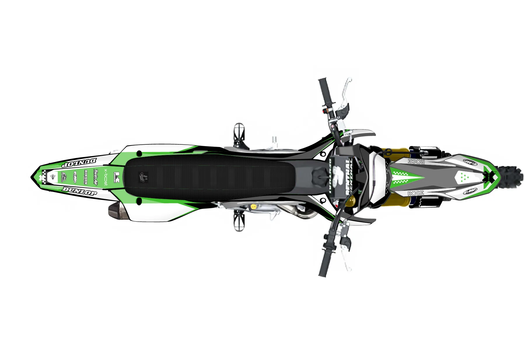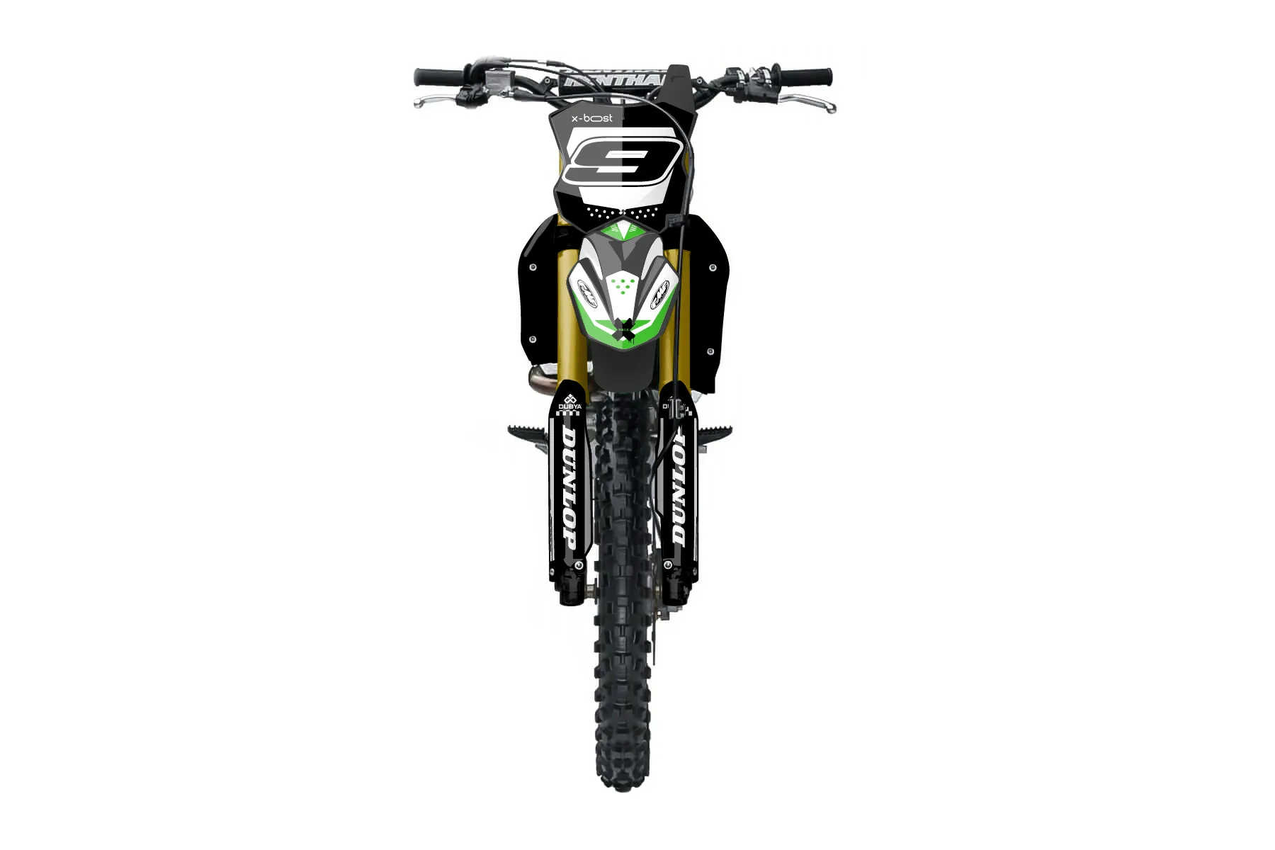 «If forfiddie » — готовый комплект графики серии Staple для Kawasaki MX Graphic Kit Kawasaki KX450F 2019. В комплекте: графика на бак и боковые облицовки, крылья (переднее и заднее), передний щиток, номерные таблички, защита вилки. Материал: ПВХ-винил 80 мкр с холодной ламинацией 300 мкр, общая толщина 380 мкр; покрытие глянцевое или матовое на выбор. Устойчив к UV-излучению, воде, бензину и мойке высокого давления. Клей акриловый на сольвентной основе — постоянный, для гибких пластиков. На простых поверхностях монтируется без нагрева; для сложных изгибов рекомендуем фен. Этот пресет можно заказать как есть или взять за основу в конструкторе: поменять цвета, добавить стартовый номер и свой бренд. Производство — 3–5 рабочих дней, доставка по России СДЭКом или Почтой, по СНГ — курьерскими службами.