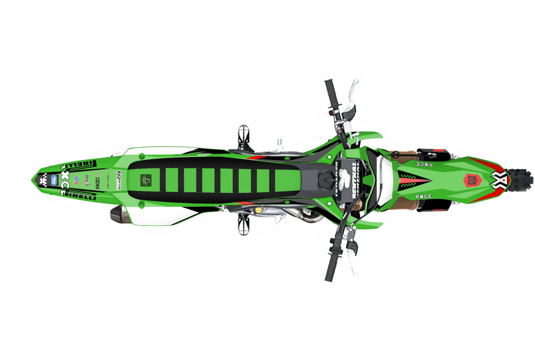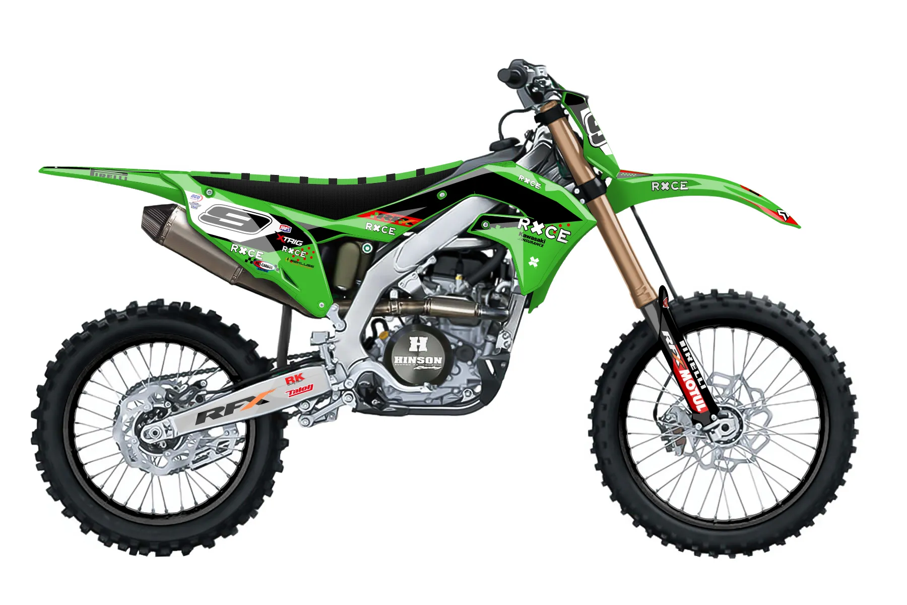 «KX 450 MAYCON» — готовый комплект графики серии Staple для Kawasaki MX Graphic Kit Kawasaki KX450F 2019. В комплекте: графика на бак и боковые облицовки, крылья (переднее и заднее), передний щиток, номерные таблички, защита вилки. Материал: ПВХ-винил 80 мкр с холодной ламинацией 300 мкр, общая толщина 380 мкр; покрытие глянцевое или матовое на выбор. Устойчив к UV-излучению, воде, бензину и мойке высокого давления. Клей акриловый на сольвентной основе — постоянный, для гибких пластиков. На простых поверхностях монтируется без нагрева; для сложных изгибов рекомендуем фен. Этот пресет можно заказать как есть или взять за основу в конструкторе: поменять цвета, добавить стартовый номер и свой бренд. Производство — 3–5 рабочих дней, доставка по России СДЭКом или Почтой, по СНГ — курьерскими службами.