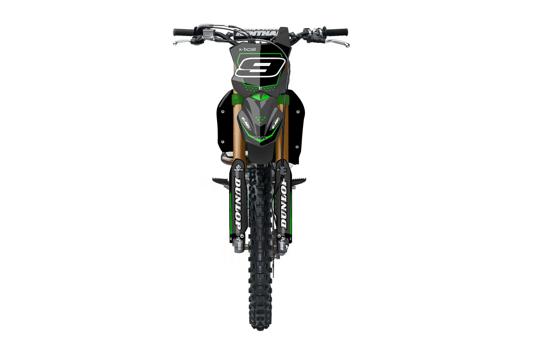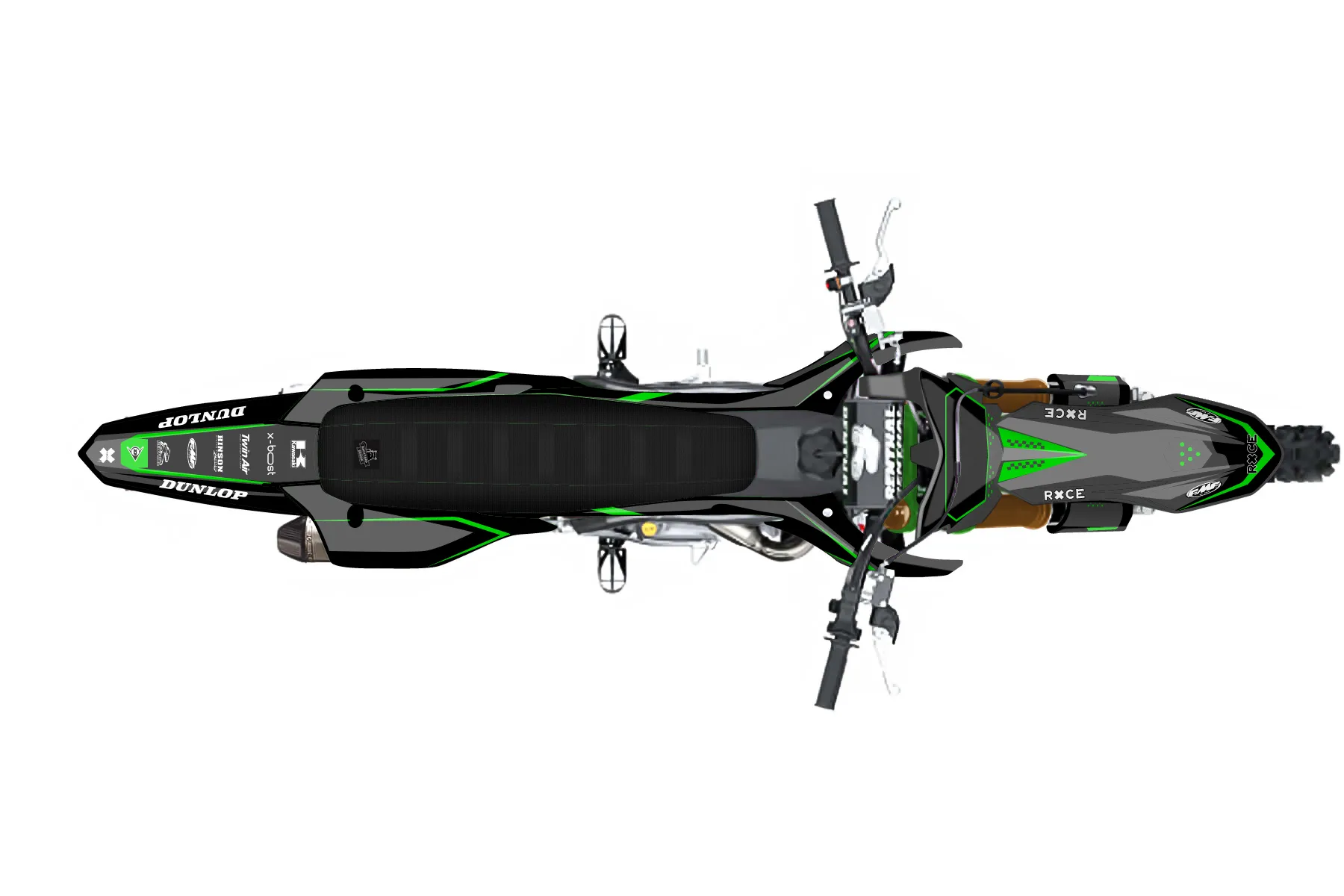 «Lusty Neon» — готовый комплект графики серии Staple для Kawasaki MX Graphic Kit Kawasaki KX450F 2019. В комплекте: графика на бак и боковые облицовки, крылья (переднее и заднее), передний щиток, номерные таблички, защита вилки. Материал: ПВХ-винил 80 мкр с холодной ламинацией 300 мкр, общая толщина 380 мкр; покрытие глянцевое или матовое на выбор. Устойчив к UV-излучению, воде, бензину и мойке высокого давления. Клей акриловый на сольвентной основе — постоянный, для гибких пластиков. На простых поверхностях монтируется без нагрева; для сложных изгибов рекомендуем фен. Этот пресет можно заказать как есть или взять за основу в конструкторе: поменять цвета, добавить стартовый номер и свой бренд. Производство — 3–5 рабочих дней, доставка по России СДЭКом или Почтой, по СНГ — курьерскими службами.
