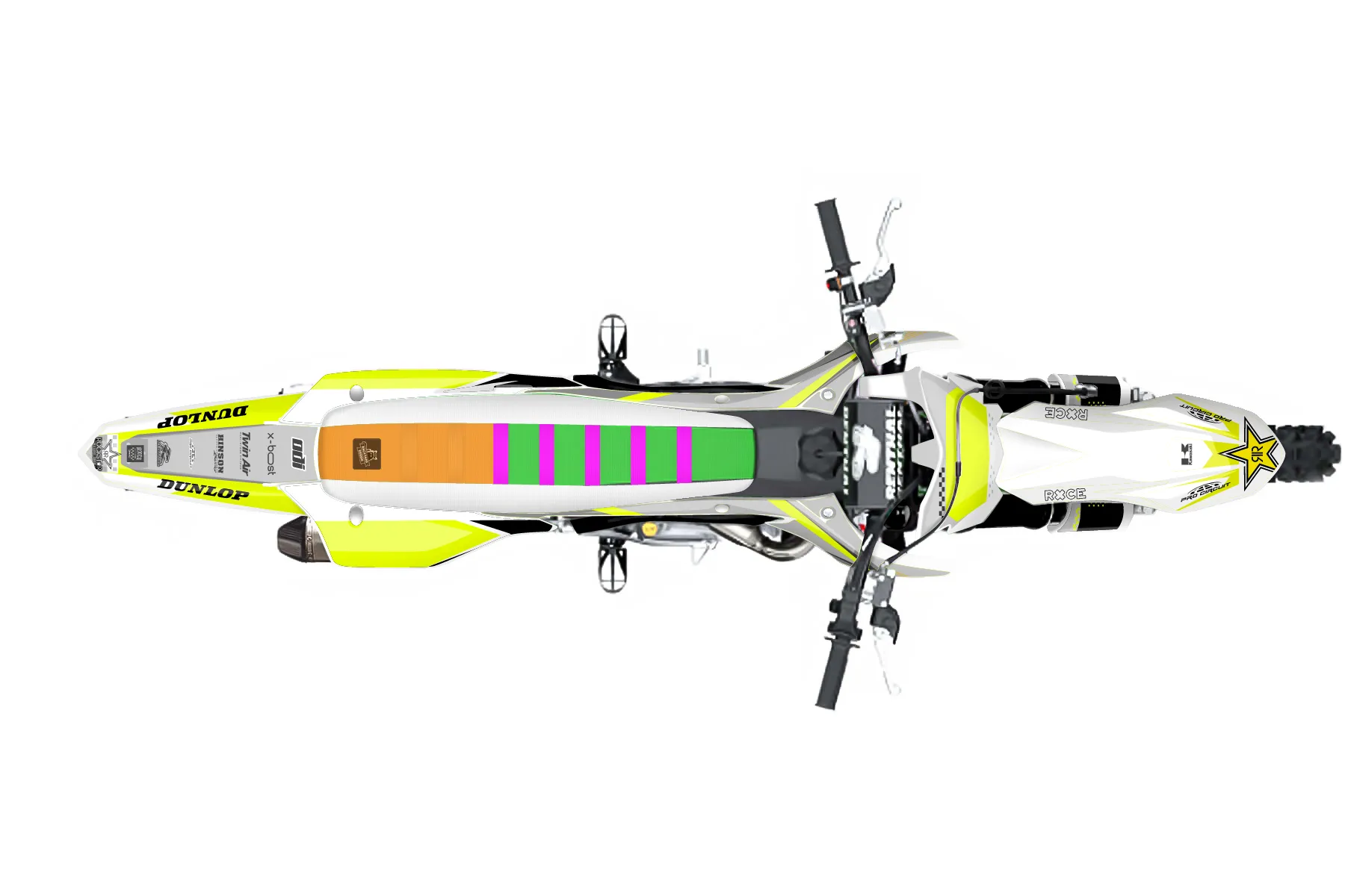 «Rockstar» — готовый комплект графики серии Staple для Kawasaki MX Graphic Kit Kawasaki KX450F 2019. В комплекте: графика на бак и боковые облицовки, крылья (переднее и заднее), передний щиток, номерные таблички, защита вилки. Материал: ПВХ-винил 80 мкр с холодной ламинацией 300 мкр, общая толщина 380 мкр; покрытие глянцевое или матовое на выбор. Устойчив к UV-излучению, воде, бензину и мойке высокого давления. Клей акриловый на сольвентной основе — постоянный, для гибких пластиков. На простых поверхностях монтируется без нагрева; для сложных изгибов рекомендуем фен. Этот пресет можно заказать как есть или взять за основу в конструкторе: поменять цвета, добавить стартовый номер и свой бренд. Производство — 3–5 рабочих дней, доставка по России СДЭКом или Почтой, по СНГ — курьерскими службами.