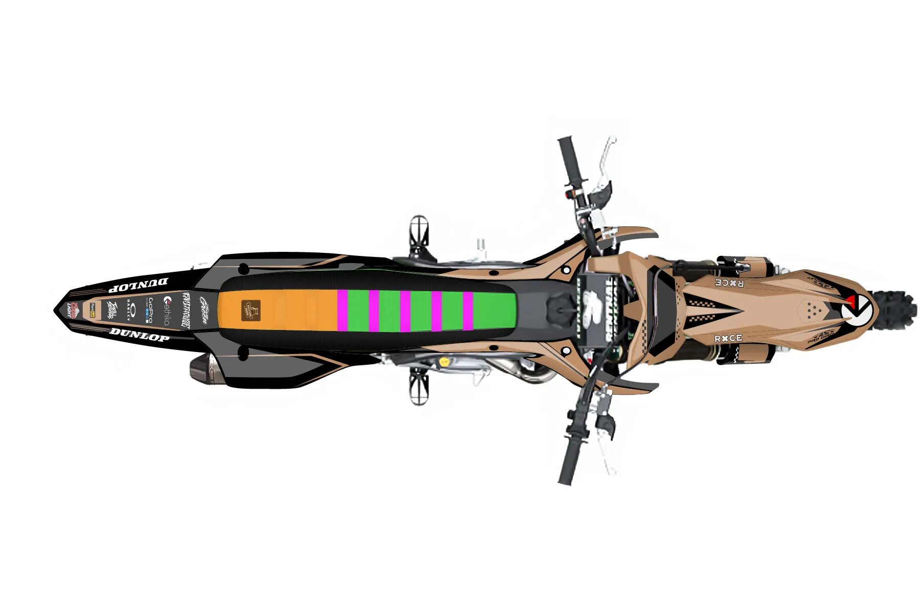 «tan 23 kx450f» — готовый комплект графики серии Staple для Kawasaki MX Graphic Kit Kawasaki KX450F 2019. В комплекте: графика на бак и боковые облицовки, крылья (переднее и заднее), передний щиток, номерные таблички, защита вилки. Материал: ПВХ-винил 80 мкр с холодной ламинацией 300 мкр, общая толщина 380 мкр; покрытие глянцевое или матовое на выбор. Устойчив к UV-излучению, воде, бензину и мойке высокого давления. Клей акриловый на сольвентной основе — постоянный, для гибких пластиков. На простых поверхностях монтируется без нагрева; для сложных изгибов рекомендуем фен. Этот пресет можно заказать как есть или взять за основу в конструкторе: поменять цвета, добавить стартовый номер и свой бренд. Производство — 3–5 рабочих дней, доставка по России СДЭКом или Почтой, по СНГ — курьерскими службами.