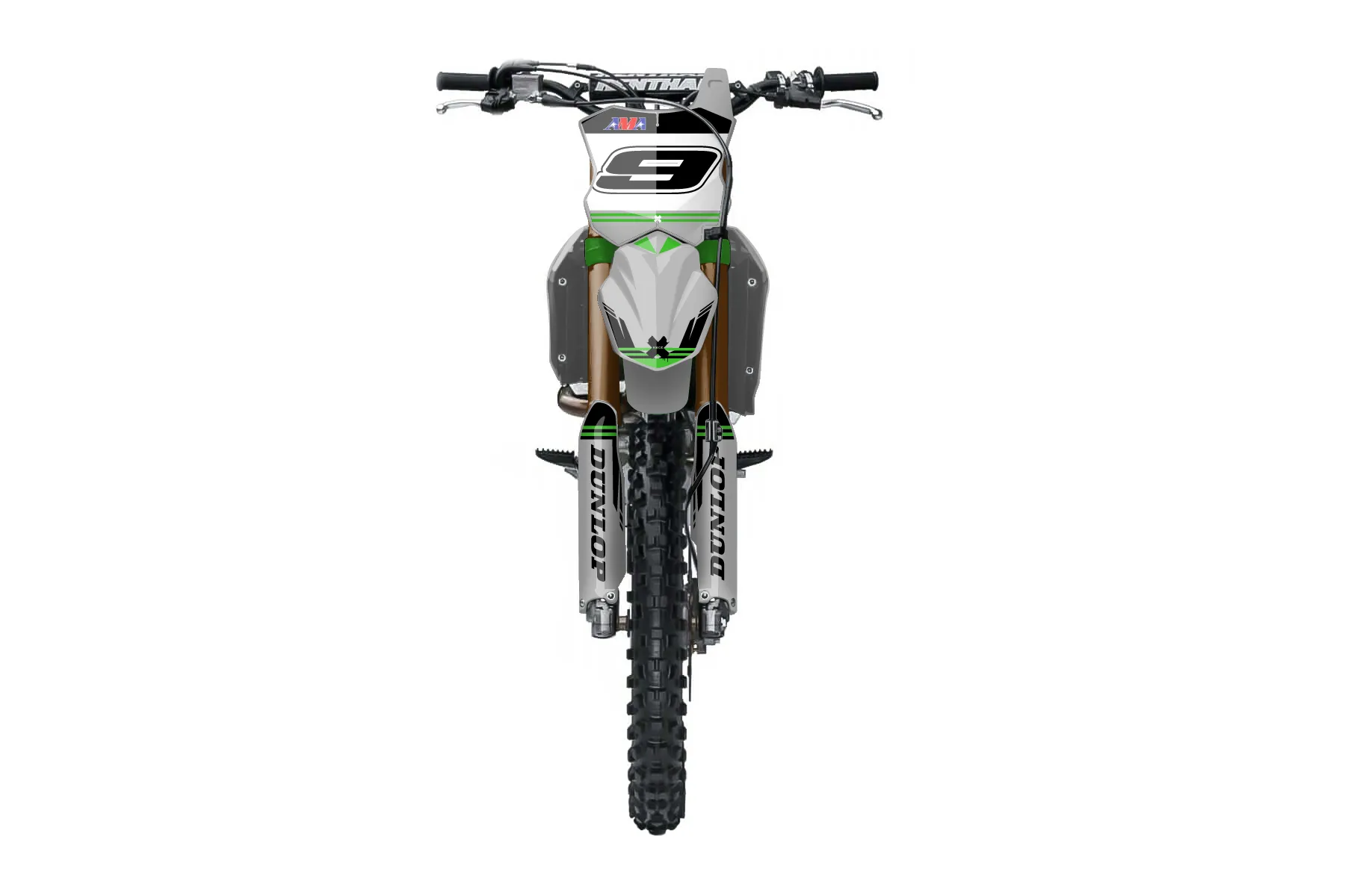 «Concepts» — готовый комплект графики серии Untucked для Kawasaki MX Graphic Kit Kawasaki KX450F 2019. В комплекте: графика на бак и боковые облицовки, крылья (переднее и заднее), передний щиток, номерные таблички, защита вилки. Материал: ПВХ-винил 80 мкр с холодной ламинацией 300 мкр, общая толщина 380 мкр; покрытие глянцевое или матовое на выбор. Устойчив к UV-излучению, воде, бензину и мойке высокого давления. Клей акриловый на сольвентной основе — постоянный, для гибких пластиков. На простых поверхностях монтируется без нагрева; для сложных изгибов рекомендуем фен. Этот пресет можно заказать как есть или взять за основу в конструкторе: поменять цвета, добавить стартовый номер и свой бренд. Производство — 3–5 рабочих дней, доставка по России СДЭКом или Почтой, по СНГ — курьерскими службами.